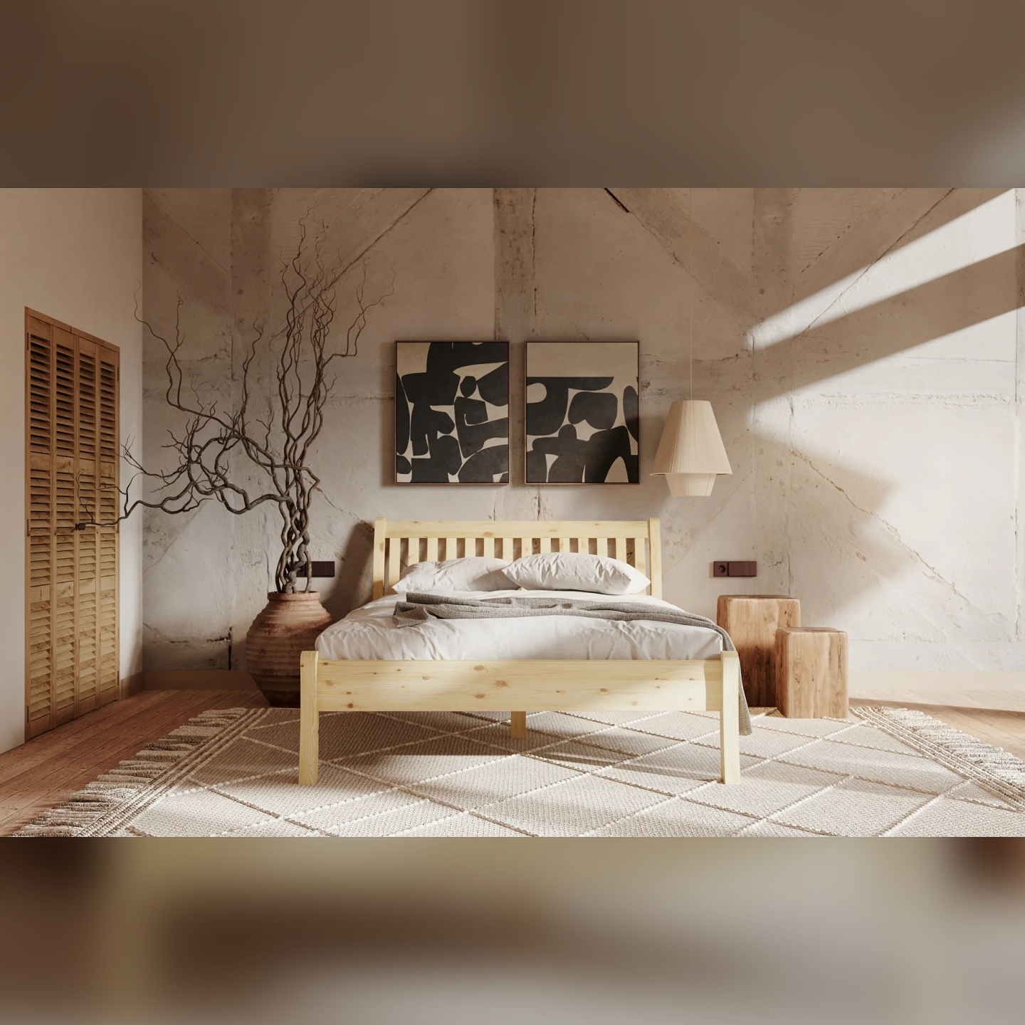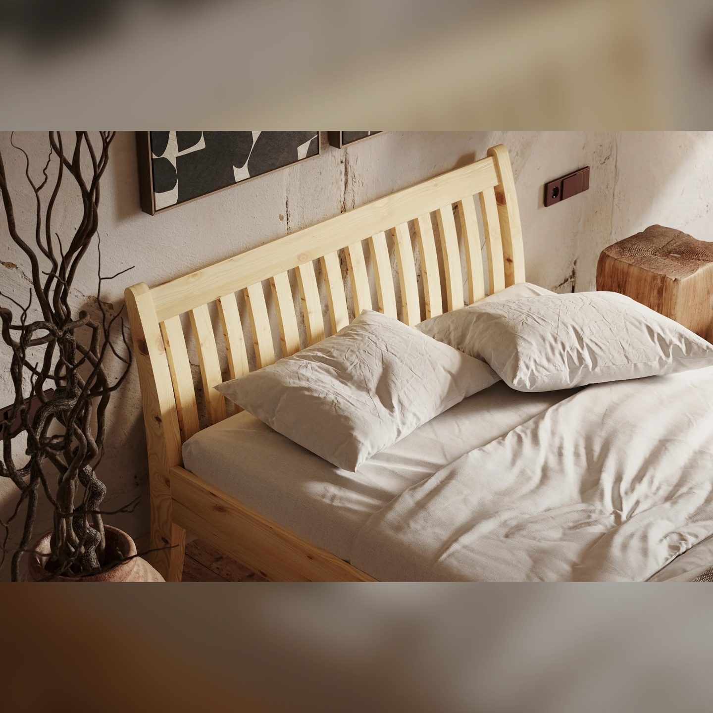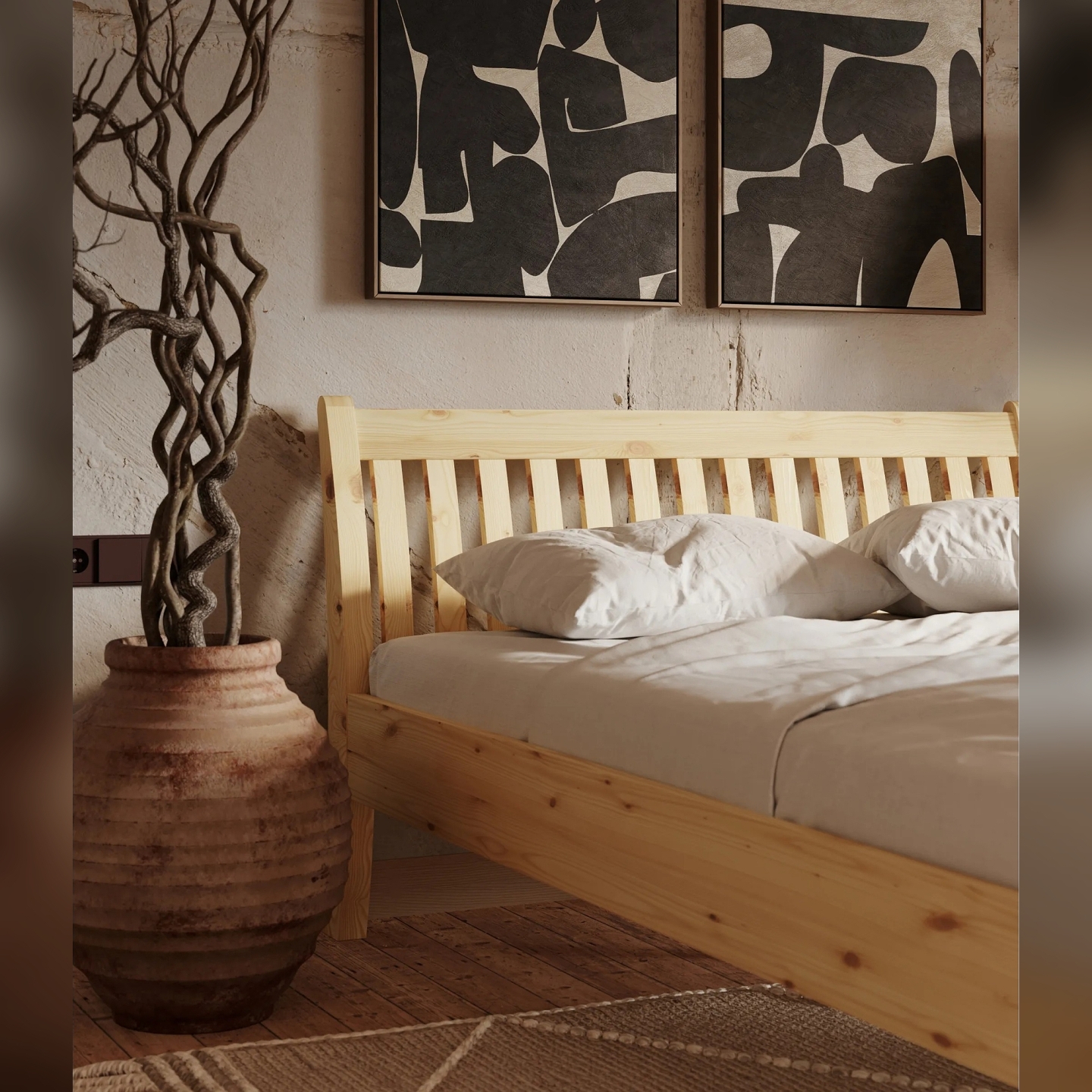 Odkryj urok i funkcjonalność z Łóżkiem sosnowym Tonja 160x200, które idealnie łączy minimalistyczny estoński design z solidnością i naturalnym pięknem drewna. To klasyczne, podwójne łóżko wykonane z wysokiej jakości drewna sosnowego jest wyborem, który od lat cieszy się niesłabnącą popularnością wśród klientów ceniących sobie trwałość i estetykę. Jego prosta, ale elegancka forma i naturalne wykończenie lakierem bezbarwnym sprawiają, że z łatwością wpasowuje się w nowoczesne, skandynawskie, a nawet klasyczne sypialnie. Zapewnij sobie komfortowy i zdrowy sen w łóżku, które zostało zaprojektowane z myślą o wytrzymałości, o czym świadczy zastosowanie piątej nogi wzmacniającej stelaż. Na załączonym zdjęciu widać piękną, naturalną teksturę jasnego drewna sosnowego oraz estetyczny, szprosowy zagłówek, który dodaje meblowi lekkości.