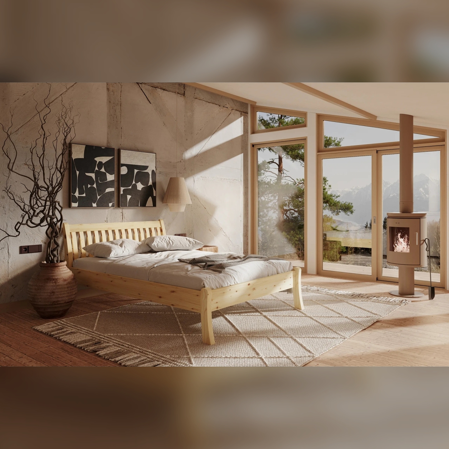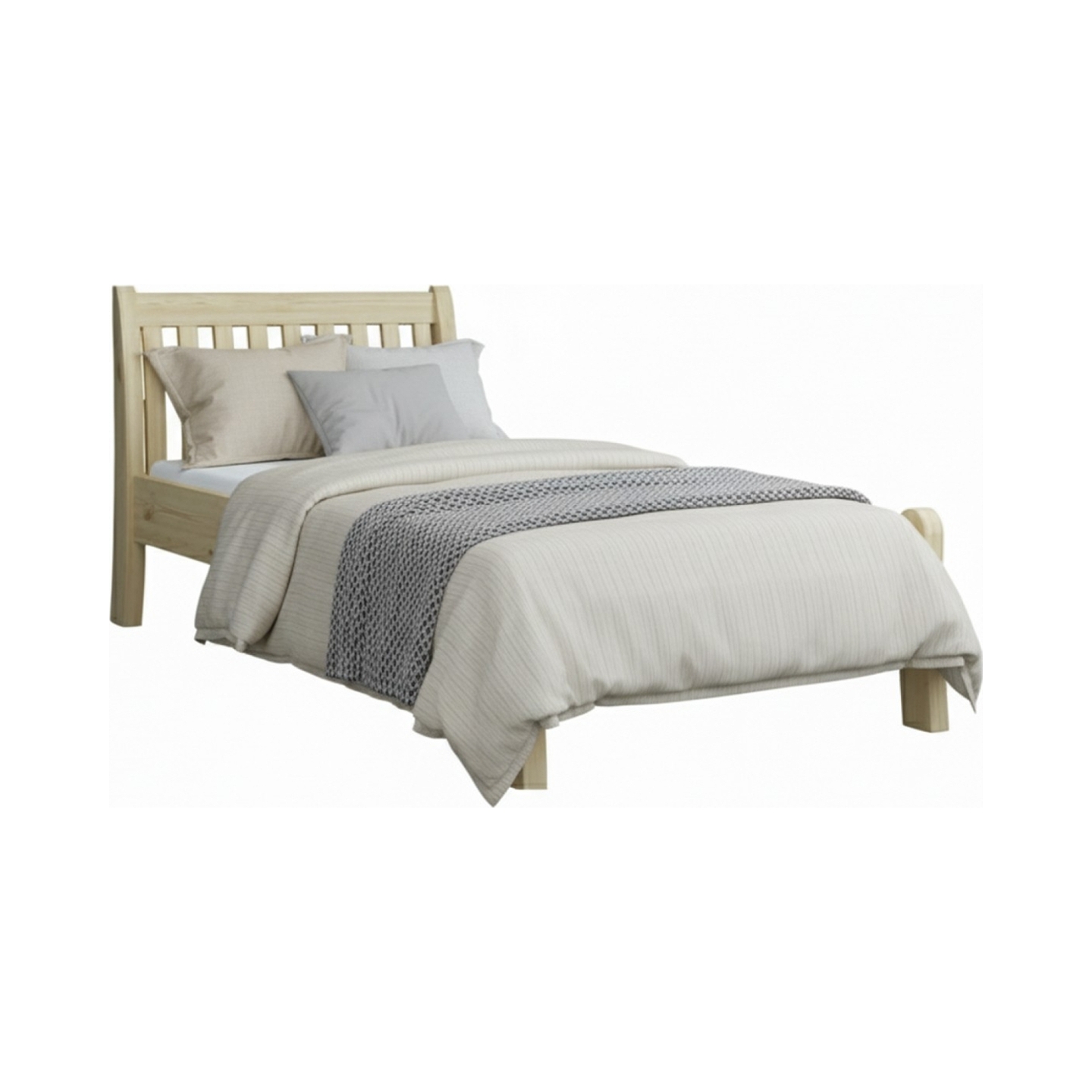 Poznaj Łóżko sosnowe Tonja 90x200, które jest doskonałym połączeniem minimalistycznego, estońskiego wzornictwa z solidnością naturalnego drewna sosnowego. Ten model to idealny wybór dla każdego, kto poszukuje trwałego i estetycznego łóżka pojedynczego o standardowym wymiarze 90x200 cm. Jego niesłabnąca popularność to dowód na to, że proste, funkcjonalne rozwiązania są najlepsze. Łóżko posiada piękną, klasyczną formę, pokrytą naturalnym lakierem bezbarwnym, który podkreśla ciepły odcień i usłojenie sosny. Widoczne na zdjęciu łóżko w jasnym, naturalnym kolorze drewna z eleganckim, szczebelkowym zagłówkiem, idealnie wkomponuje się zarówno w pokój młodzieżowy, gościnny, jak i sypialnię dorosłego ceniącego przestrzeń. Zastosowanie dodatkowej piątej nogi znacząco wzmacnia stelaż, gwarantując maksymalną stabilność i komfort użytkowania.