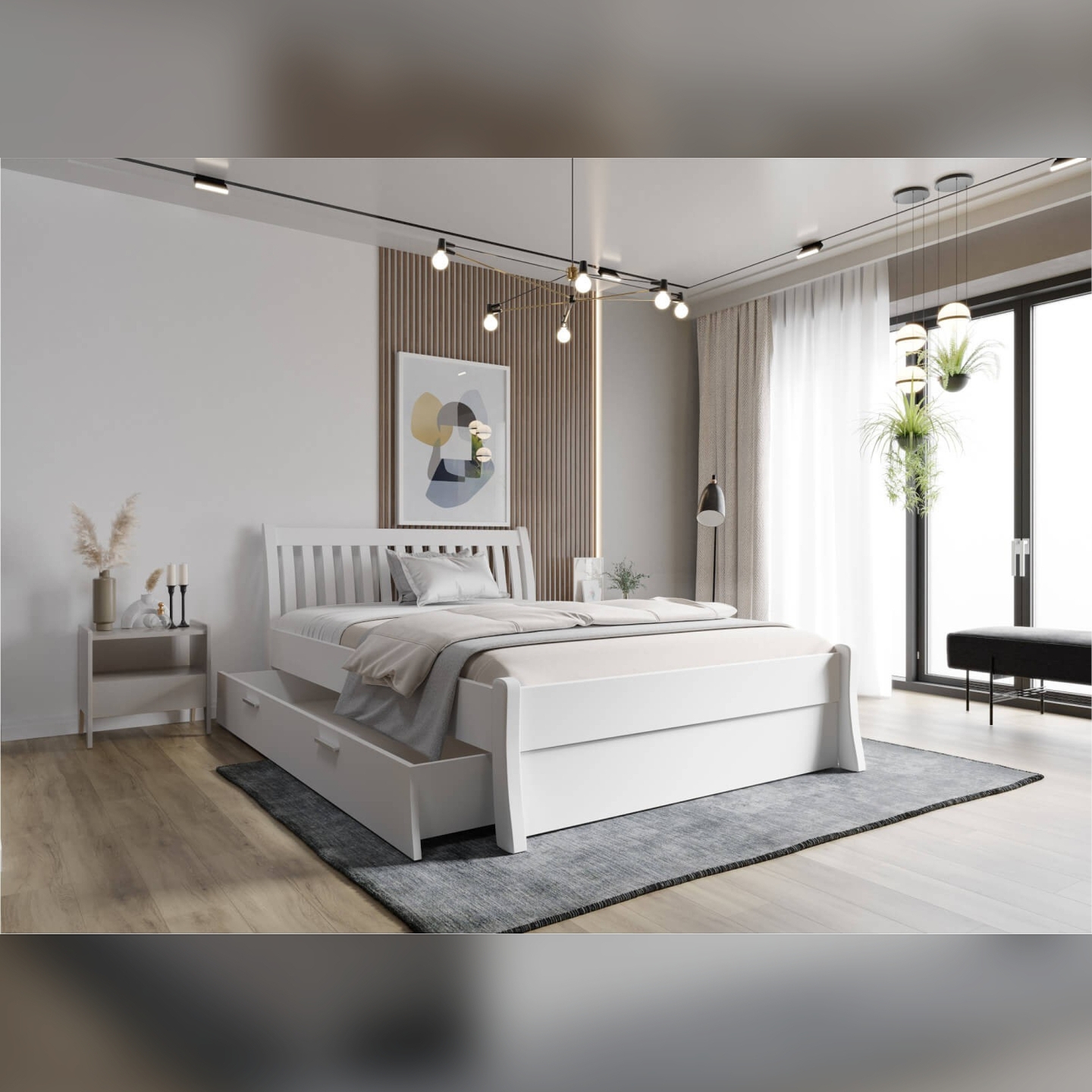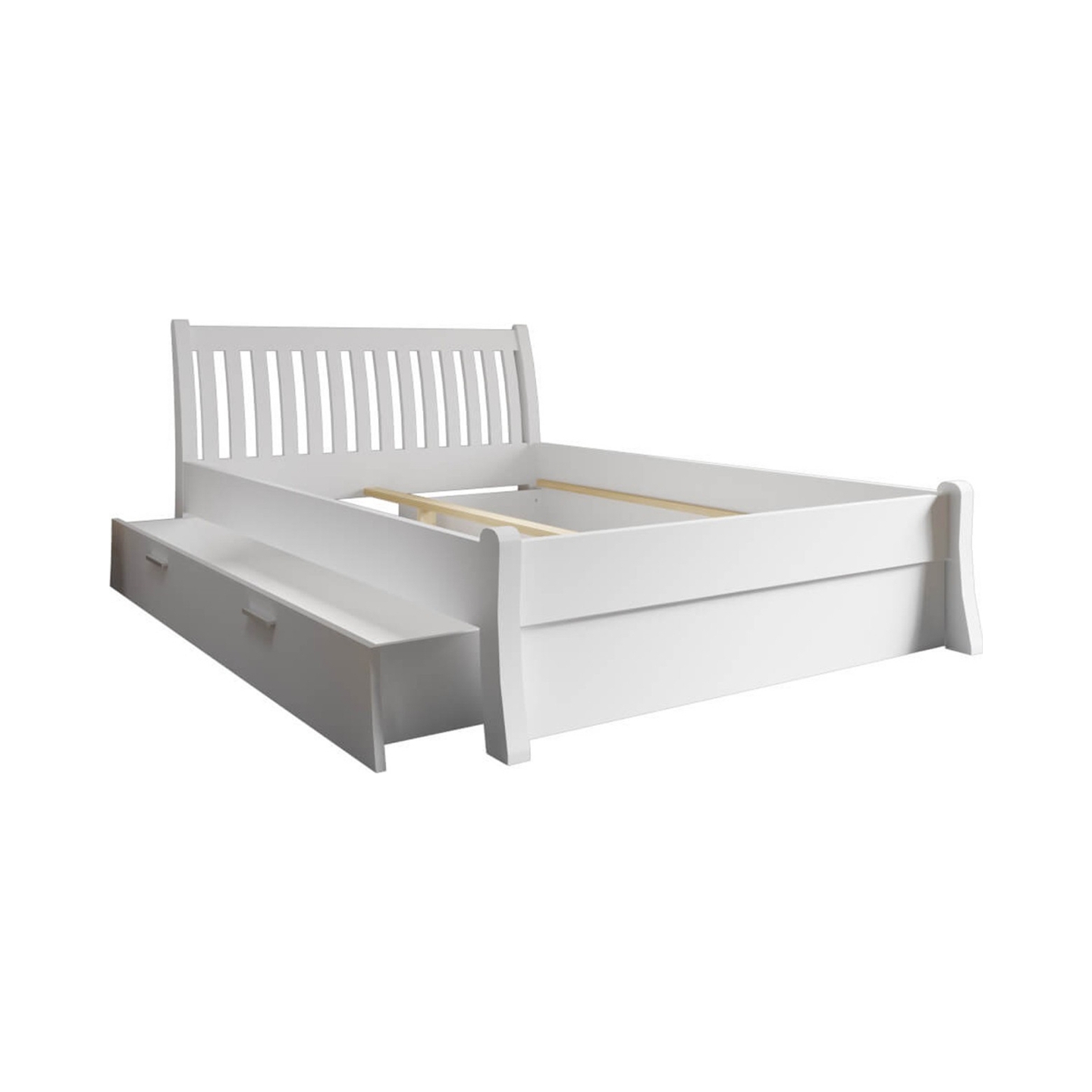 Inwestując w białe szuflady sosnowe Tonja 160x200, zyskujesz nie tylko porządek, ale i dodatkową, niezwykle cenną przestrzeń magazynową. Ich solidna konstrukcja z drewna sosnowego gwarantuje trwałość, a mechanizm na kółkach komfort użytkowania na co dzień. To idealne rozwiązanie, aby ukryć to, co nie powinno być na widoku. Chociaż małe łóżka (90x200 i 120x200) korzystają z pojedynczych, nieco głębszych szuflad, dla łóżek podwójnych, takich jak 160x200, zestaw dwóch szuflad jest znacznie bardziej praktyczny i ergonomiczny. Dodając te szuflady do swojego łóżka Tonja, maksymalnie wykorzystasz potencjał sypialni.