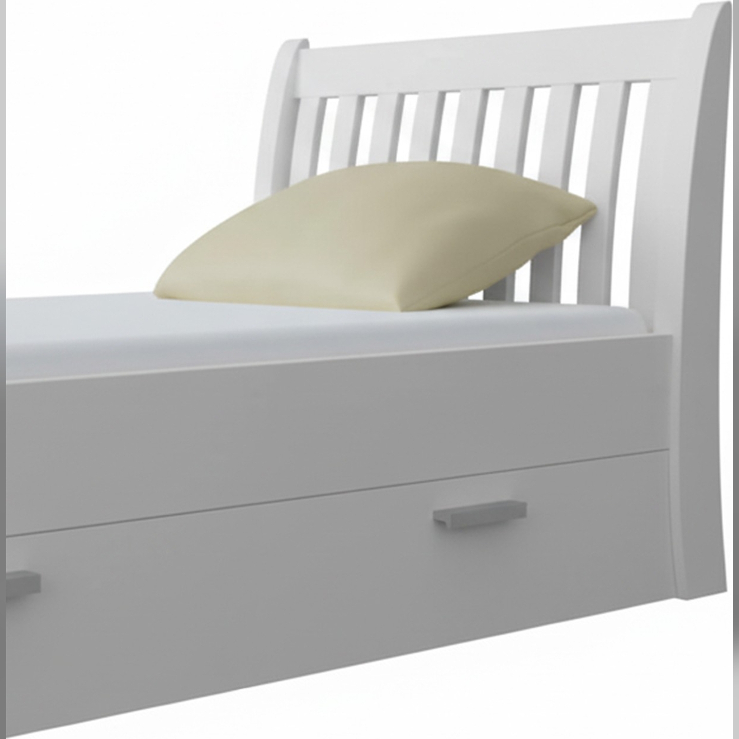 Dzięki białym szufladom sosnowym Tonja 140x200 z łatwością utrzymasz porządek w sypialni, chowając pościel lub inne przedmioty, które standardowo zagracają przestrzeń. System dwóch niezależnych szuflad jest znacznie bardziej praktyczny niż jedna duża komora, umożliwiając lepszą organizację. Chociaż mniejsze warianty łóżek (90x200 i 120x200) korzystają z pojedynczej, nieco głębszej szuflady (65 cm), dla łóżka podwójnego 140x200 rozwiązanie z dwiema szufladami jest bardziej ergonomiczne i wygodniejsze w codziennym dostępie. Solidna konstrukcja i estetyczne wykonanie sprawiają, że szuflady te są nie tylko praktyczne, ale także stanowią eleganckie i funkcjonalne dopełnienie minimalistycznego łóżka Tonja.