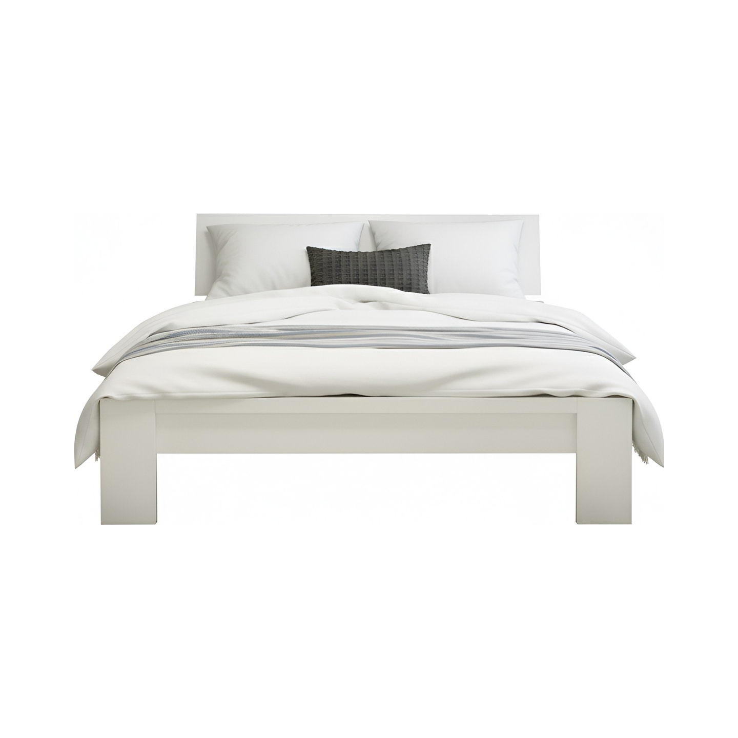 Łóżko bukowe Calm 120x200 białe to solidny mebel sypialniany, wykonany z BUKU i wykończony eleganckim białym lakierem. Charakteryzuje się nowoczesnym, minimalistycznym designem i masywnymi nogami (17,2cm/17,2cm /4,5cm).