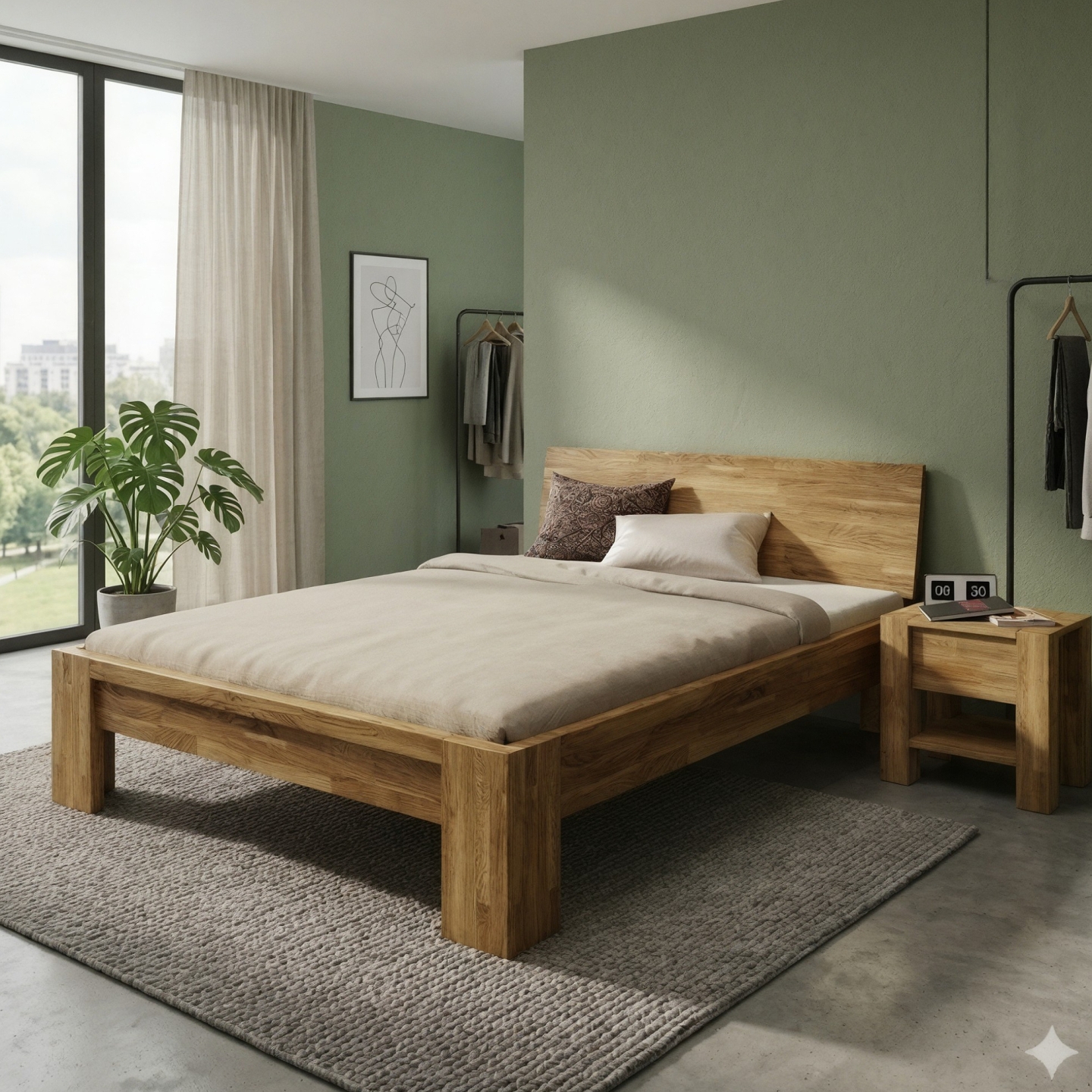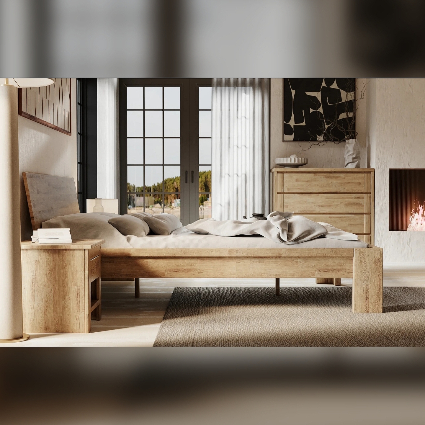 Łóżko dębowe Montana 140x200 rustical to masywny mebel klasy premium, charakteryzujący się silną konstrukcją. Wykonane jest w 100% z litego drewna dębowego, poddanego procesowi szczotkowania (dąb szczotkowany).