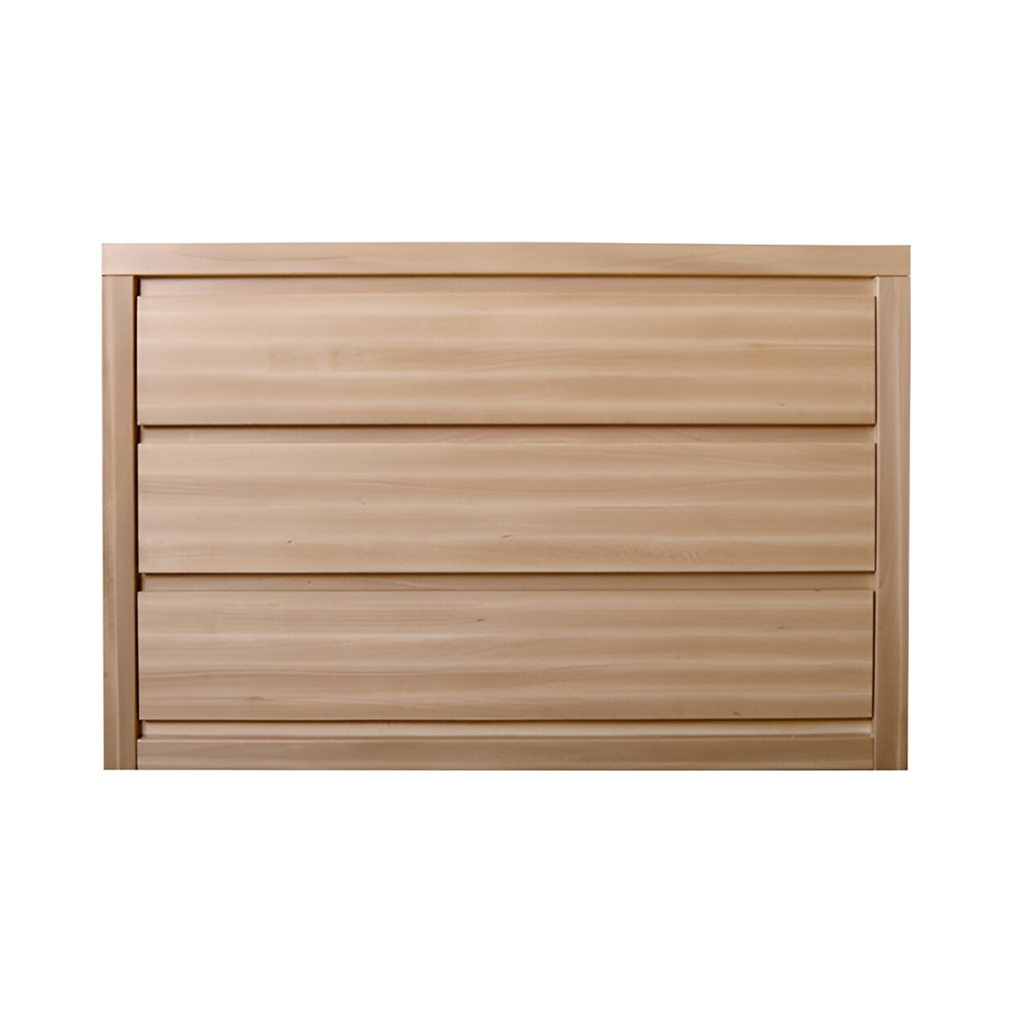 Szeroka i solidna komoda o długości 140 cm, wykonana w całości z twardego drewna bukowego. Połączenie pogrubionego korpusu i nowoczesnego, bezuchwytowego systemu otwierania (poprzez podcięcia na palce) nadaje jej designerski i elegancki charakter. To idealny, pojemny mebel do sypialni.