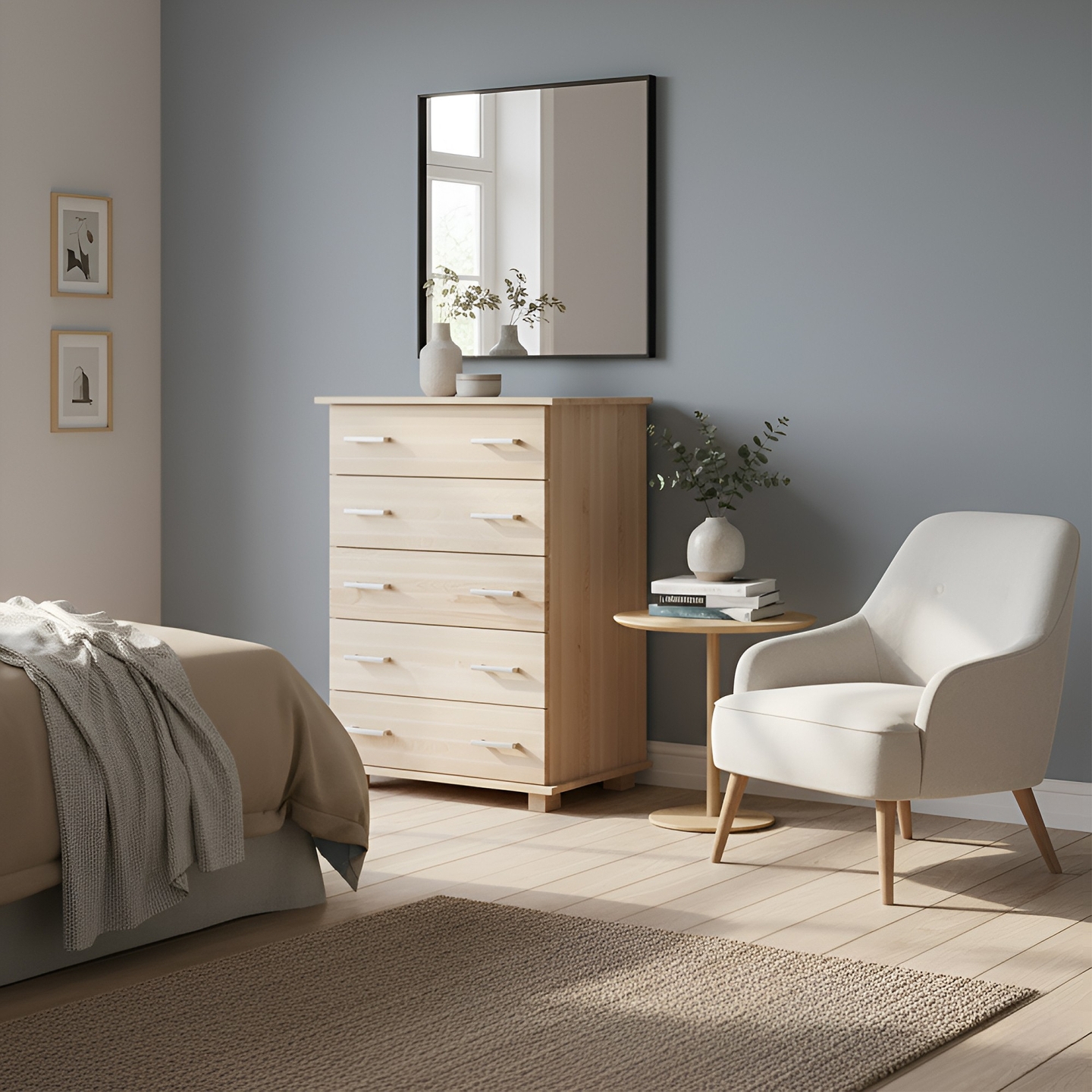 Bardzo wysoka komoda (słupek) o wysokości 125 cm, wykonana w całości z twardego drewna bukowego. Jest to idealne rozwiązanie do sypialni, gdy potrzebna jest maksymalna pojemność przy mniejszej szerokości. Solidna konstrukcja i naturalne wykończenie lakierem bezbarwnym gwarantują trwałość i elegancję.