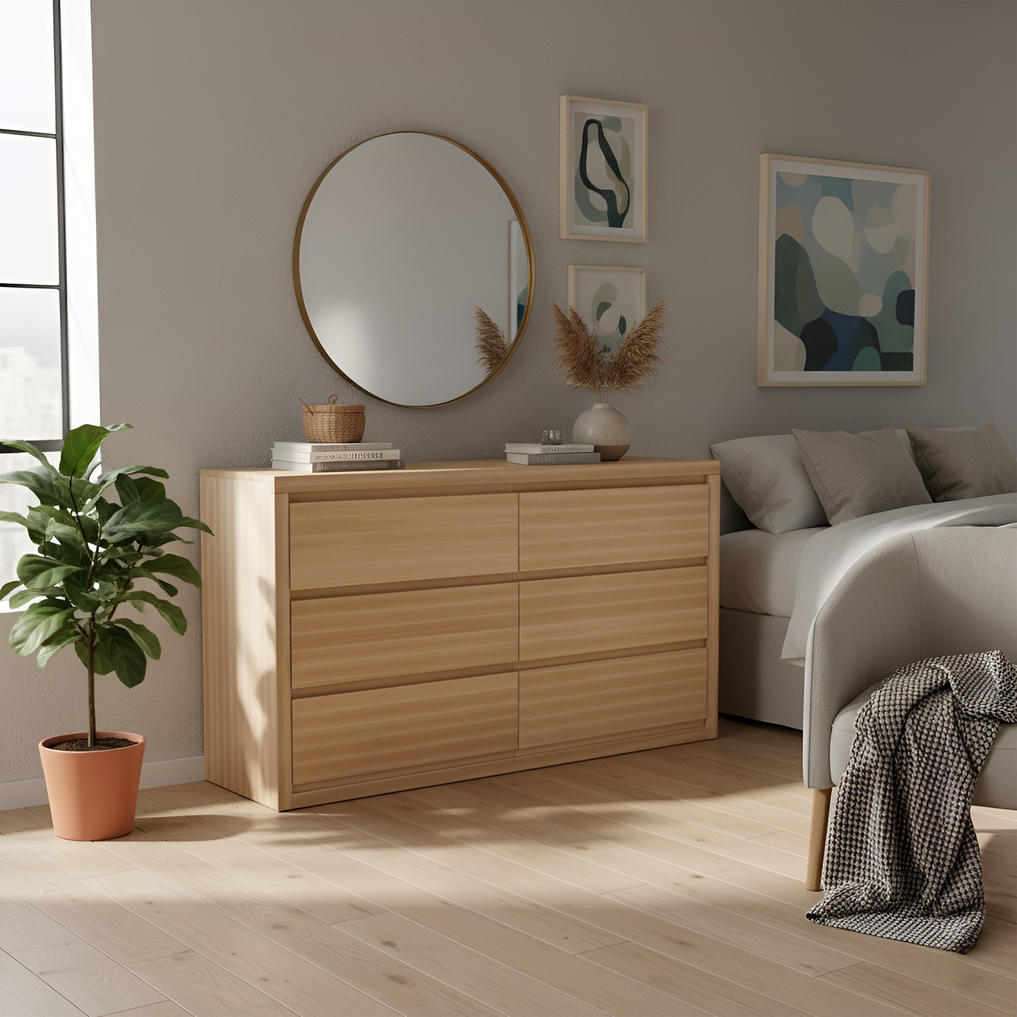 Luksusowa komoda o szerokości 160 cm, wykonana w całości z twardego drewna bukowego. Pogrubiony korpus oraz bezuchwytowy system otwierania nadają temu meblowi designerskiego i eleganckiego charakteru. Komoda jest idealnym wyborem do sypialni lub salonu, wprowadzając luksusową i naturalną barwę.