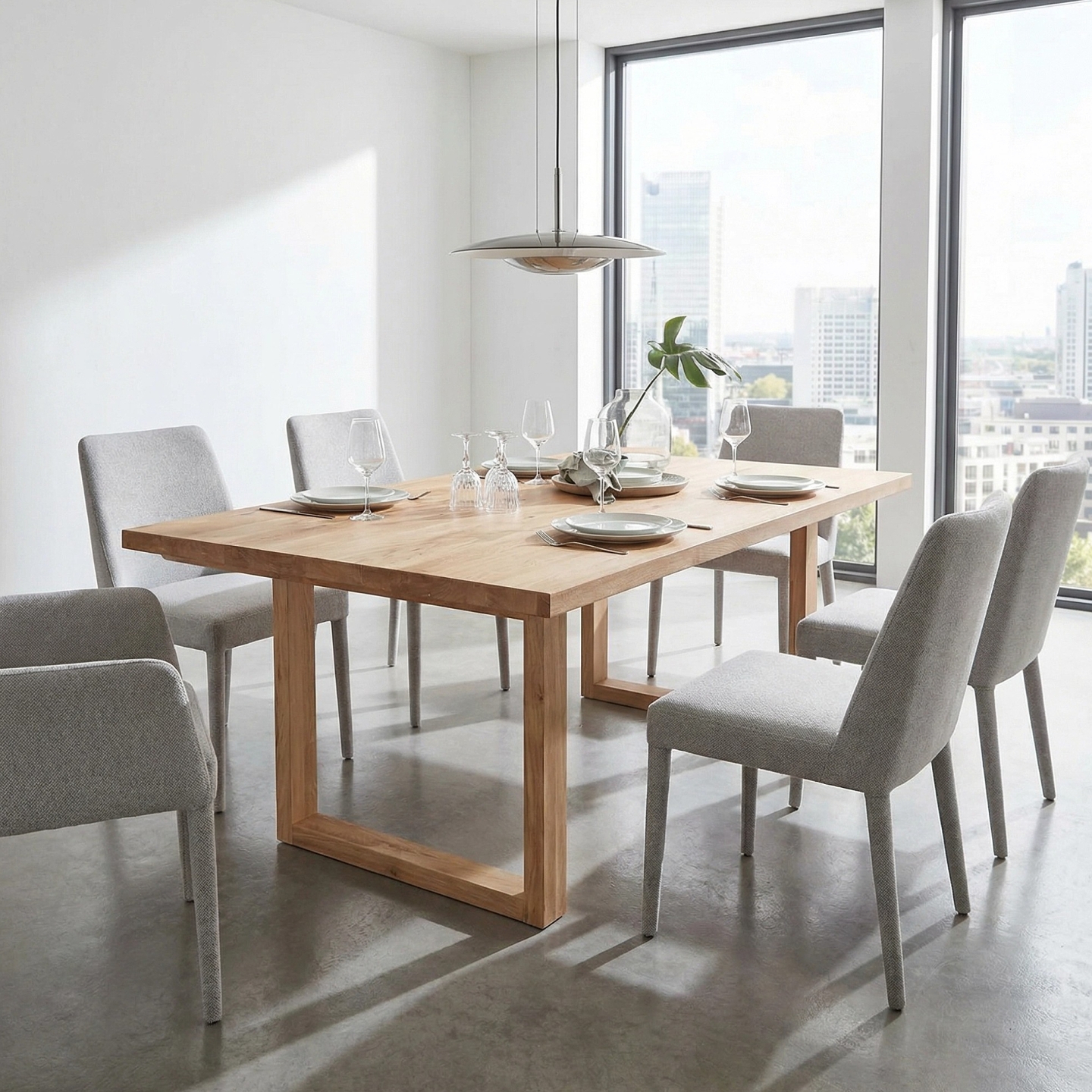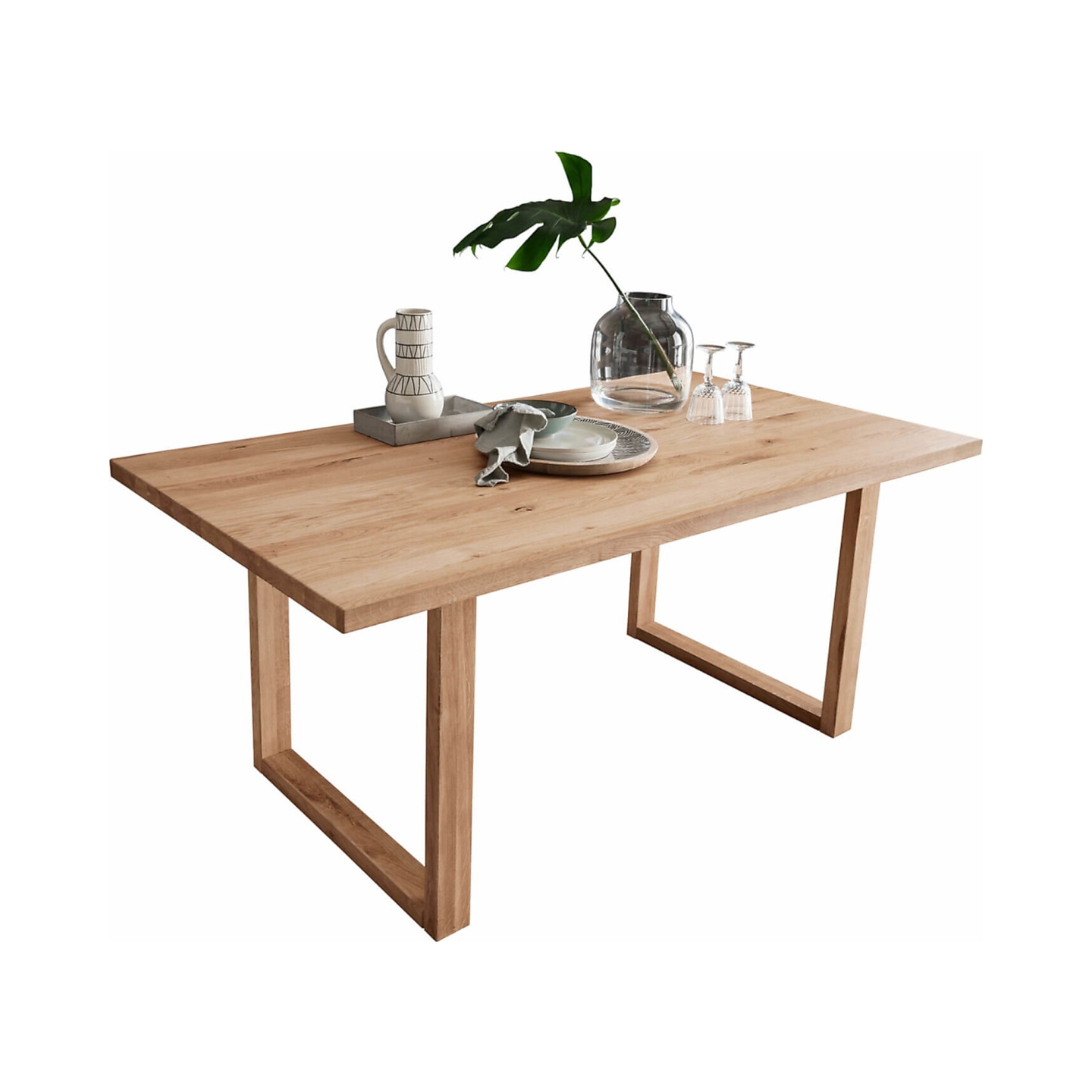 Lite drewno dębowe dobrze znosi codzienne użytkowanie – jest odporne na uderzenia i punktowe naciski. Olej bezbarwny chroni powierzchnię, a jednocześnie pozwala zachować wyczuwalną fakturę i naturalne usłojenie, dzięki czemu stół wpisuje się w ciepłe i spokojne aranżacje wnętrz.