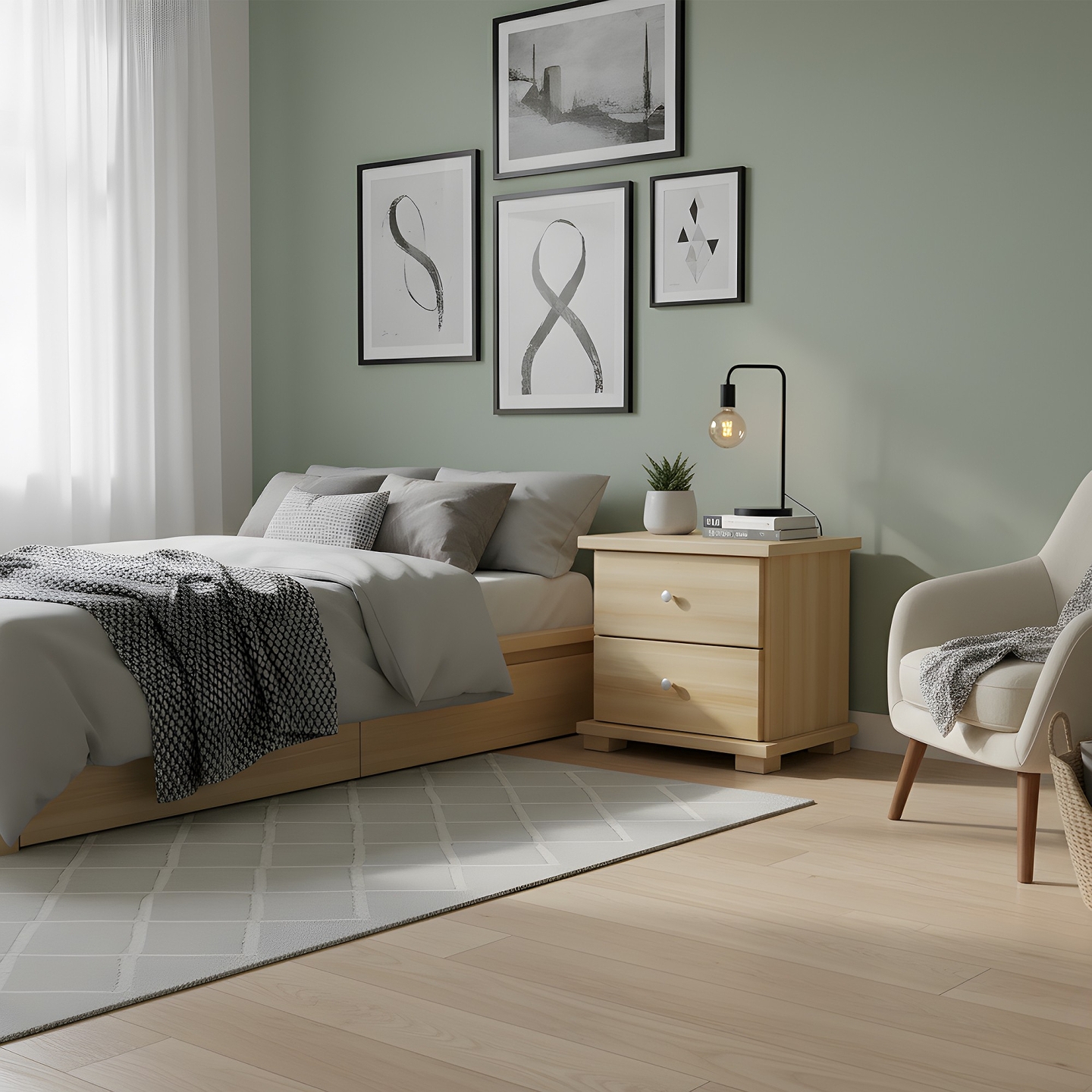 Kompaktowa i niska szafka nocna o szerokości 42 cm, idealna do sypialni. Wykonana w całości z litego drewna bukowego, gwarantuje solidność i trwałość. Niewielka wysokość (41 cm) sprawia, że doskonale pasuje do niższych i nowoczesnych ram łóżek.