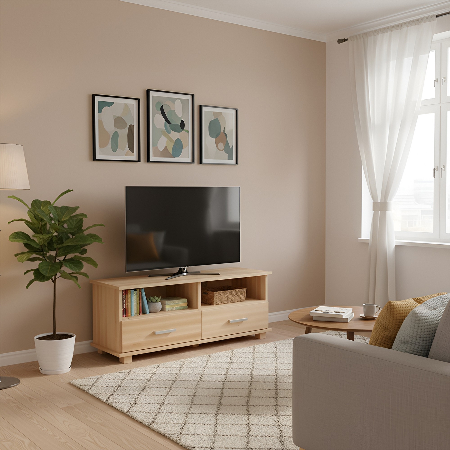 Elegancka szafka pod sprzęt RTV o szerokości 120 cm, w całości wykonana z litego drewna bukowego. Jest to idealny mebel do salonu, łączący funkcjonalność z naturalną estetyką drewna. Fronty szafki wykonane są z bezsęcznego drewna, a wykończenie lakierem bezbarwnym wydobywa ciepłą barwę buku.