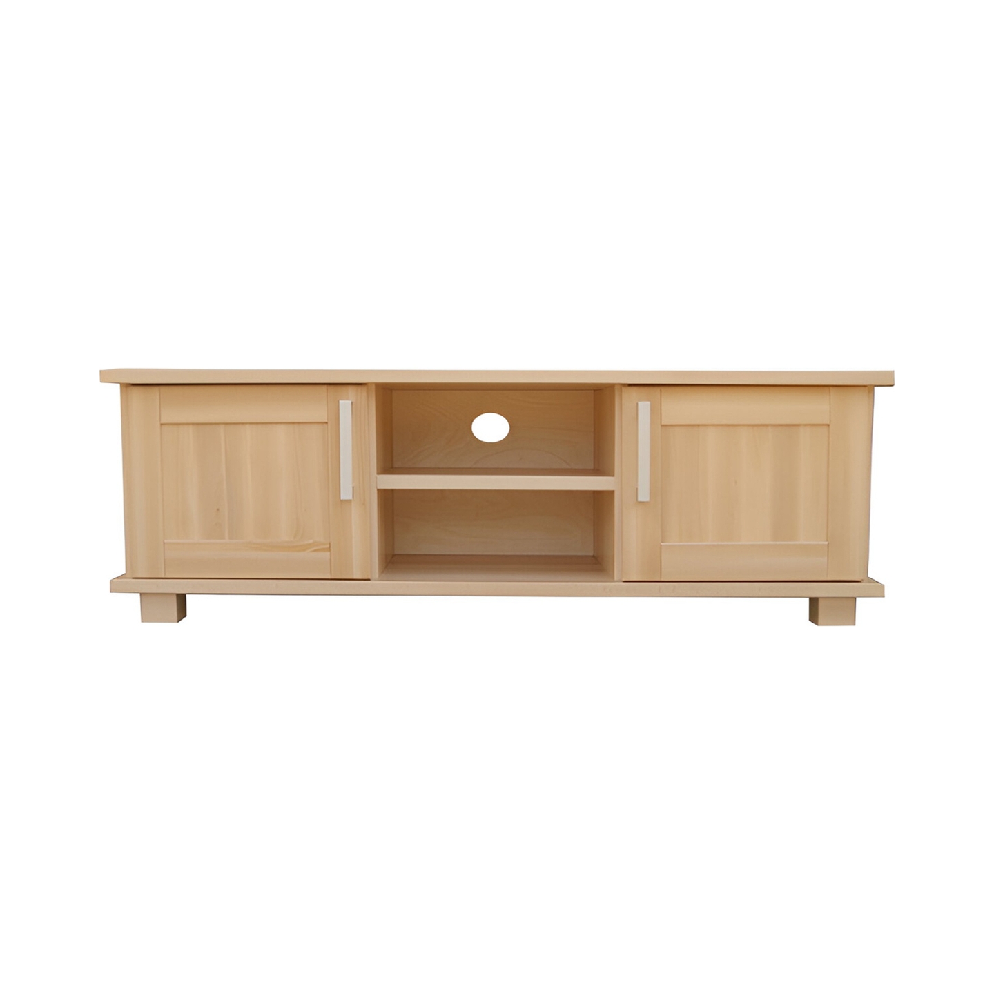 Szafka pod sprzęt RTV o szerokości 120 cm, wykonana w całości z twardego drewna bukowego. Ten mebel, charakteryzujący się minimalistyczną wysokością (40 cm), jest idealny do nowoczesnych salonów. Wszystkie elementy, z wyjątkiem tyłów i dna, są wykonane z litego, bezsęcznego drewna bukowego, wykończonego lakierem bezbarwnym.