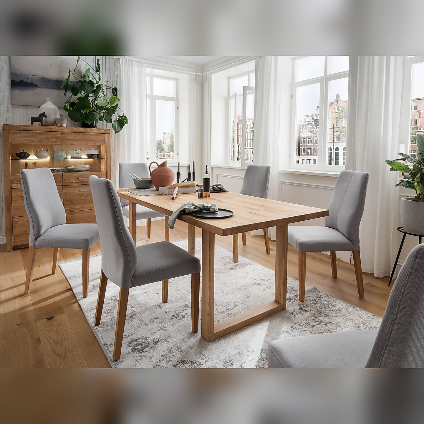Lity dąb naturalnie opiera się odkształceniom i dobrze znosi intensywne użytkowanie. Duży blat o wymiarach 200 × 100 cm daje komfortową przestrzeń dla rodziny i gości. Olejowane wykończenie chroni powierzchnię przed zabrudzeniami i umożliwia późniejszą, miejscową renowację.