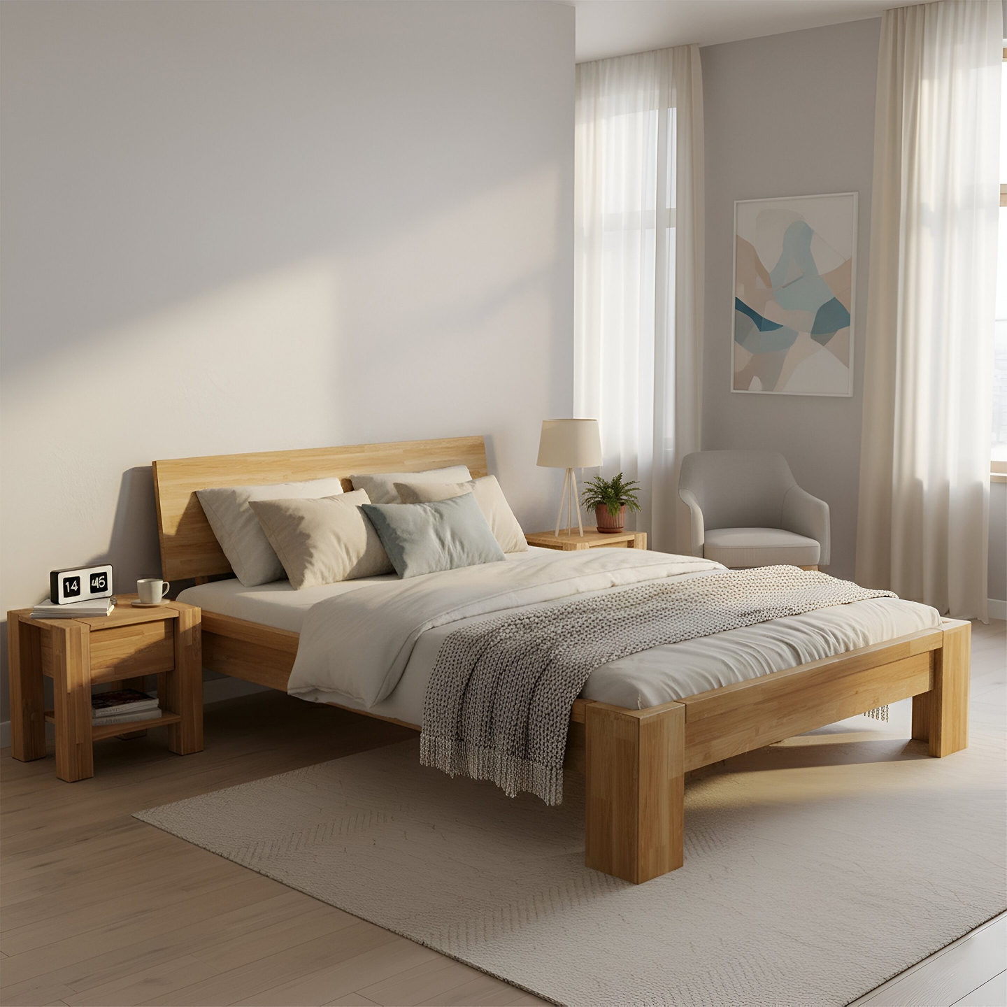 Prosta i funkcjonalna szafka nocna dębowa Aruba to idealne uzupełnienie każdej sypialni. Wykonana z wysokiej jakości drewna dębowego i wykończona trwałym bezbarwnym olejem, zachwyca naturalnym pięknem drewna, co doskonale widać na załączonym zdjęciu. Jej kompaktowe wymiary (45 cm szerokości, 35 cm głębokości i 43 cm wysokości) sprawiają, że z łatwością zmieści się nawet w niewielkiej przestrzeni, oferując jednocześnie praktyczne miejsce do przechowywania. Szafka posiada wygodną szufladę na drobiazgi oraz otwartą półkę, idealną na książkę, lampkę nocną czy telefon.