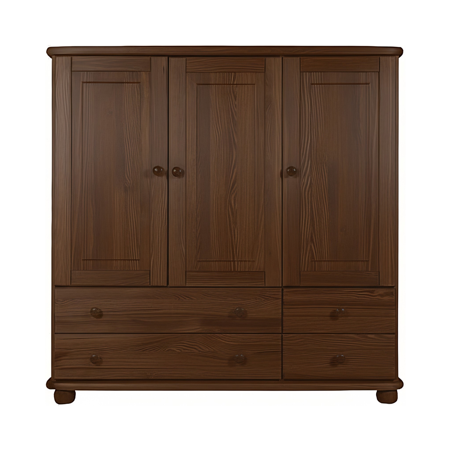 Szukasz solidnej i funkcjonalnej komody drewnianej, która w naturalny sposób wzbogaci estetykę Twojego wnętrza? Prezentujemy wytrzymałą komodę sosnową z 3 drzwiami i 3 szufladami, idealną do organizacji przestrzeni w sypialni, salonie lub przedpokoju. Mebel został wykonany w całości z wysokiej jakości drewna sosnowego, a jego fronty są z drewna bezsęcznego, co gwarantuje wyjątkową trwałość i estetykę, którą subtelnie podkreśla wykończenie bejcą. Bejca zabezpiecza drewno, jednocześnie eksponując jego piękny, naturalny rysunek słojów. Dzięki wymiarom 125 cm szerokości i 125 cm wysokości, ta komoda maksymalizuje przestrzeń do przechowywania. Jest to doskonały wybór dla tych, którzy cenią sobie klasyczne piękno natury i solidne, polskie rzemiosło.