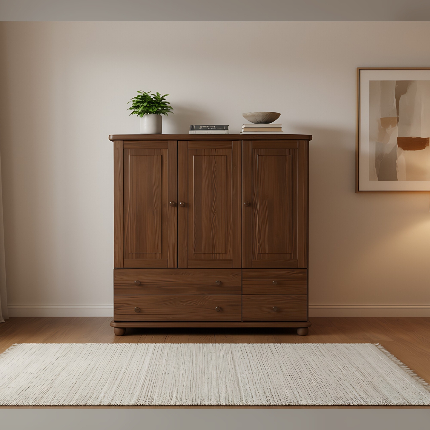 Wybierając tę drewnianą komodę, decydujesz się na mebel, który wniesie do Twojego domu ciepło i autentyczność. Jest to mebel zaprojektowany z myślą o użytkowniku – pojemne szafki pozwalają schować większe przedmioty, a szuflady idealnie nadają się na bieliznę i drobiazgi. Dzięki konstrukcji z litego drewna sosnowego, masz pewność, że inwestujesz w trwałość i zdrowy mikroklimat w swoim domu. Wymiary tej wysokiej komody (powyżej 120 cm) pozwalają na efektywne wykorzystanie przestrzeni wertykalnej. Mebel dostarczany jest w paczkach, w elementach, z kompletnym zestawem okuć niezbędnych do montażu. To idealna komoda z szufladami i drzwiami, która spełni oczekiwania najbardziej wymagających klientów, poszukujących połączenia piękna, funkcjonalności i solidności.