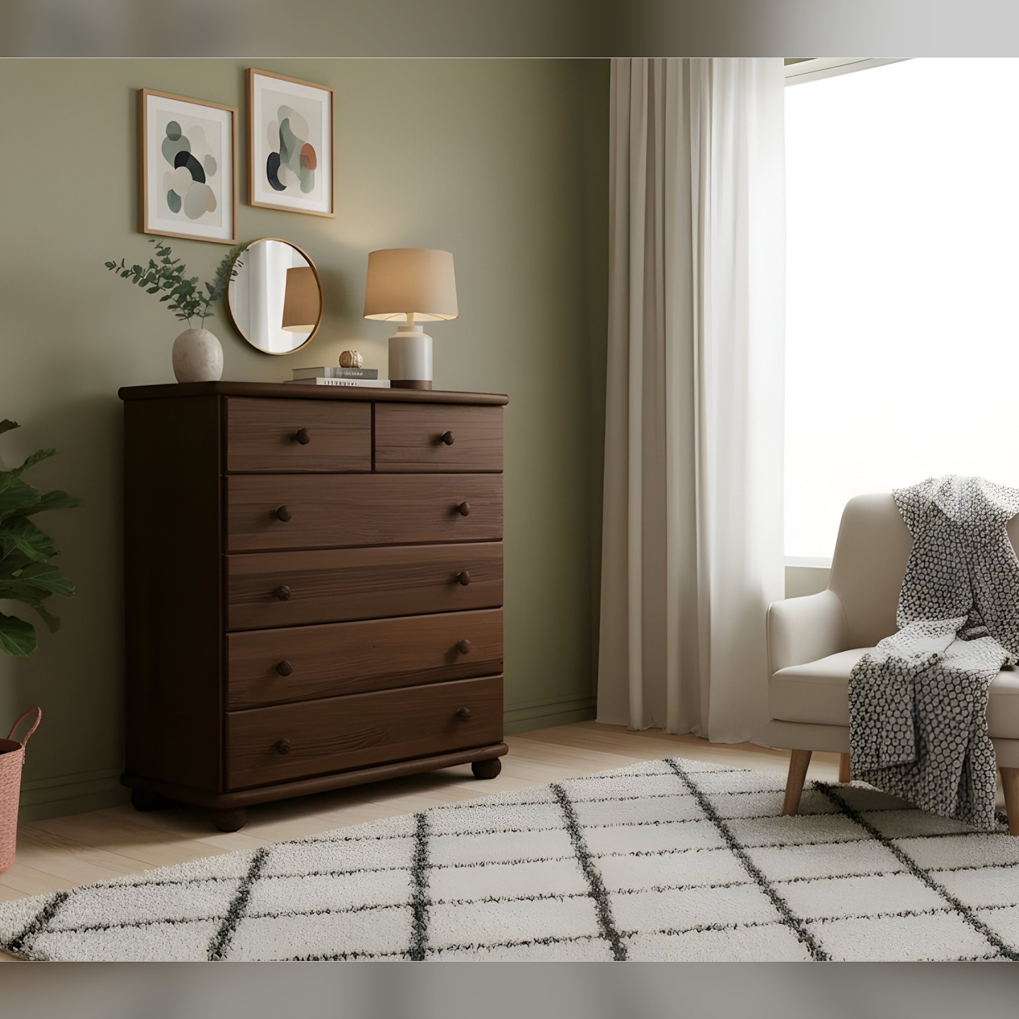 Ta drewniana komoda z szufladami to doskonały wybór dla osób ceniących sobie porządek i naturalne materiały. Jej wysokość (91 cm) sprawia, że blat jest idealny do ekspozycji dekoracji. Konstrukcja z litego drewna sosnowego, wykończona bejcą, jest gwarancją trwałości i zdrowego mikroklimatu. Mebel jest dostarczany w paczkach, w elementach, wraz z kompletnym zestawem okuć i przejrzystą instrukcją do samodzielnego montażu. Postaw na polskie rzemiosło i ciesz się funkcjonalnością, którą oferuje ta piękna i pojemna komoda, zachowując naturalny i ponadczasowy wygląd drewna.