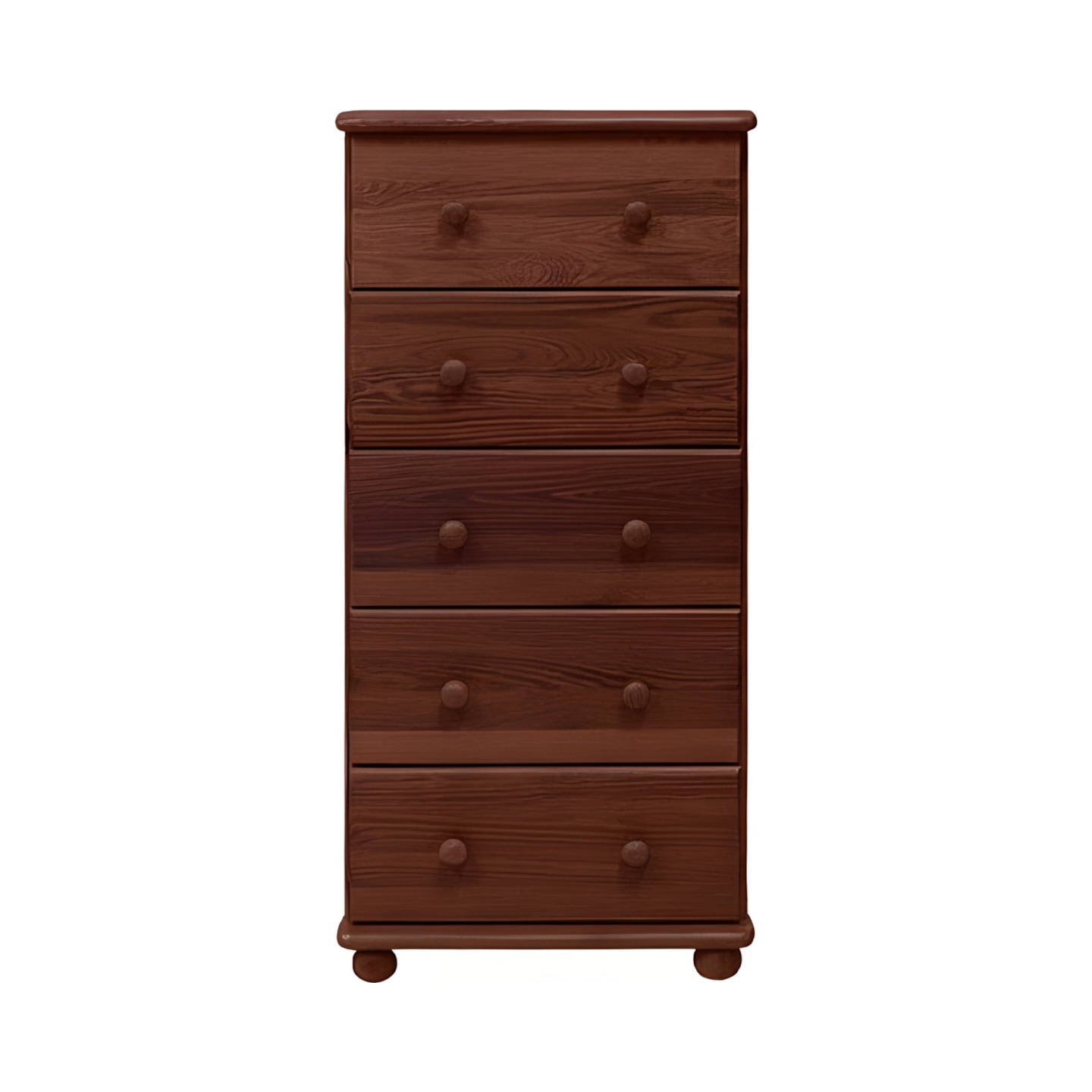 Poszukujesz wysokiej, ale jednocześnie wąskiej komody drewnianej, która idealnie wykorzysta przestrzeń pionową? Prezentujemy komodę sosnową z szufladami, doskonałą jako bieliźniarka w sypialni, garderobie lub przedpokoju. Mebel ten został wykończony bejcą, który doskonale zabezpiecza drewno, jednocześnie eksponując jego naturalny, ciepły odcień. Komoda jest wykonana w całości z drewna sosnowego, z bezsęcznych frontów, co gwarantuje jej niezawodną trwałość. Z wymiarami 60 cm szerokości i 120 cm wysokości, jest to funkcjonalne i estetyczne rozwiązanie.
