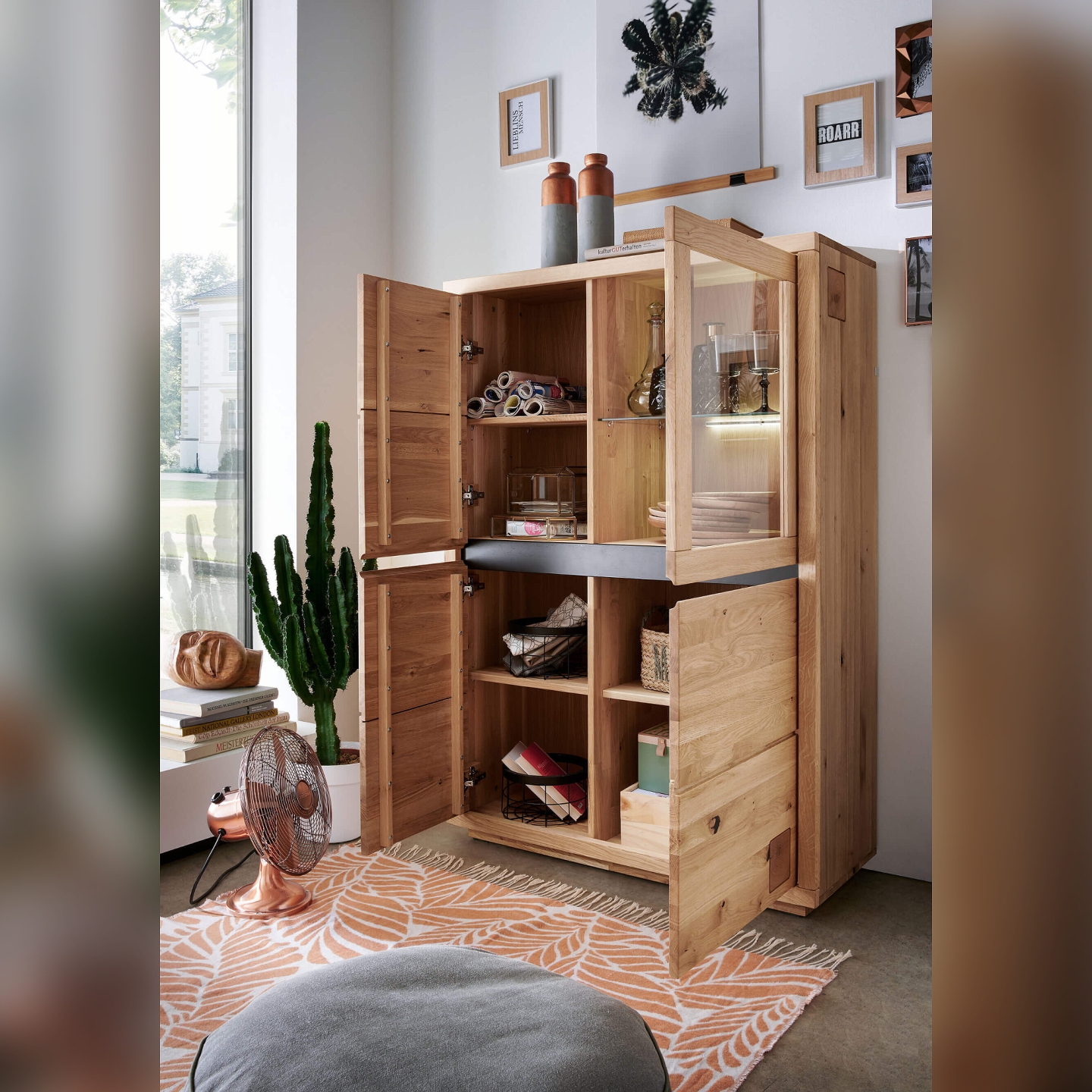 👉 Wymiary dopasowane do salonu i jadalni: wysokość 148 cm zapewnia pojemność bez przytłaczania przestrzeni.