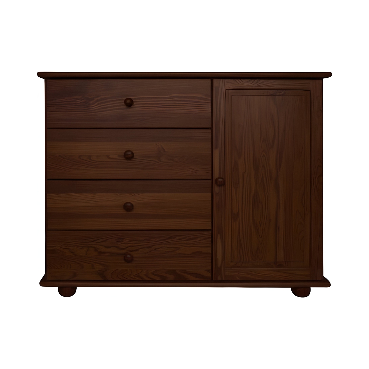 Szukasz szerokiej i pojemnej komody drewnianej, która pomieści dużą ilość bielizny i odzieży? Prezentujemy szeroką komodę sosnową, wyposażoną wyłącznie w szuflady. Mebel ten został wykonany w całości z litego drewna sosnowego, wykończonego bejcą. Szerokość 110 cm i optymalna wysokość 90 cm stanowią funkcjonalne centrum organizacji w sypialni.