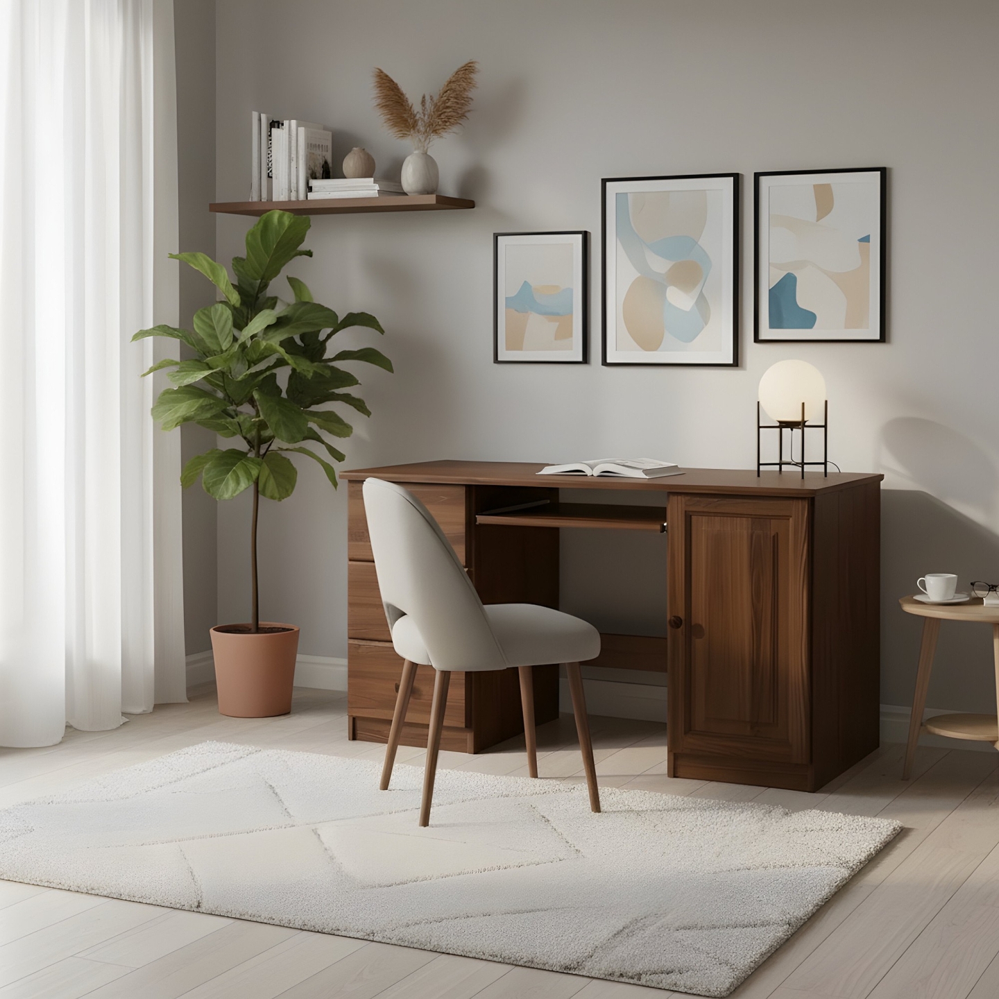 Szukasz solidnego i szerokiego biurka drewnianego, które zapewni komfortową przestrzeń do pracy i nauki? Prezentujemy biurko sosnowe z szufladami i szafką. Mebel ten został wykonany w całości z drewna sosnowego, wykończonego bejcą, który doskonale zabezpiecza drewno. Szeroki blat o wymiarach 136 cm gwarantuje wygodne miejsce na komputer i dokumenty, a optymalna wysokość (75 cm) zapewnia ergonomię pracy.