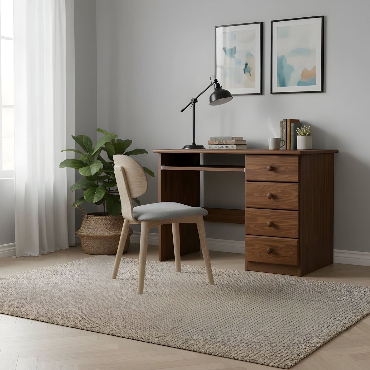 Szukasz solidnego i szerokiego biurka drewnianego, które zapewni komfortową przestrzeń do pracy i nauki? Prezentujemy biurko sosnowe z szufladami i szafką. Mebel ten został wykonany w całości z drewna sosnowego, wykończonego bejcą, który doskonale zabezpiecza drewno. Szeroki blat o wymiarach 136 cm gwarantuje wygodne miejsce na komputer i dokumenty, a optymalna wysokość (75 cm) zapewnia ergonomię pracy.