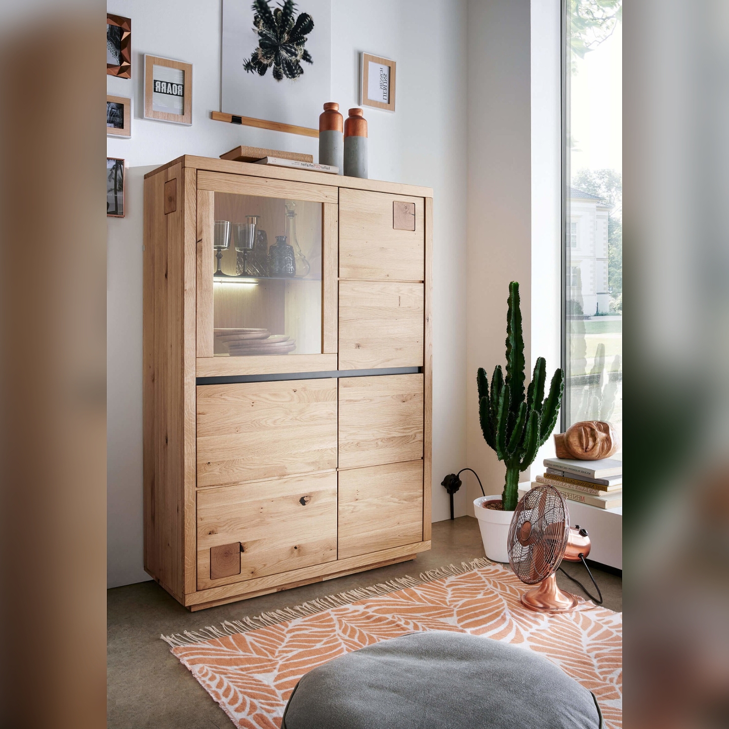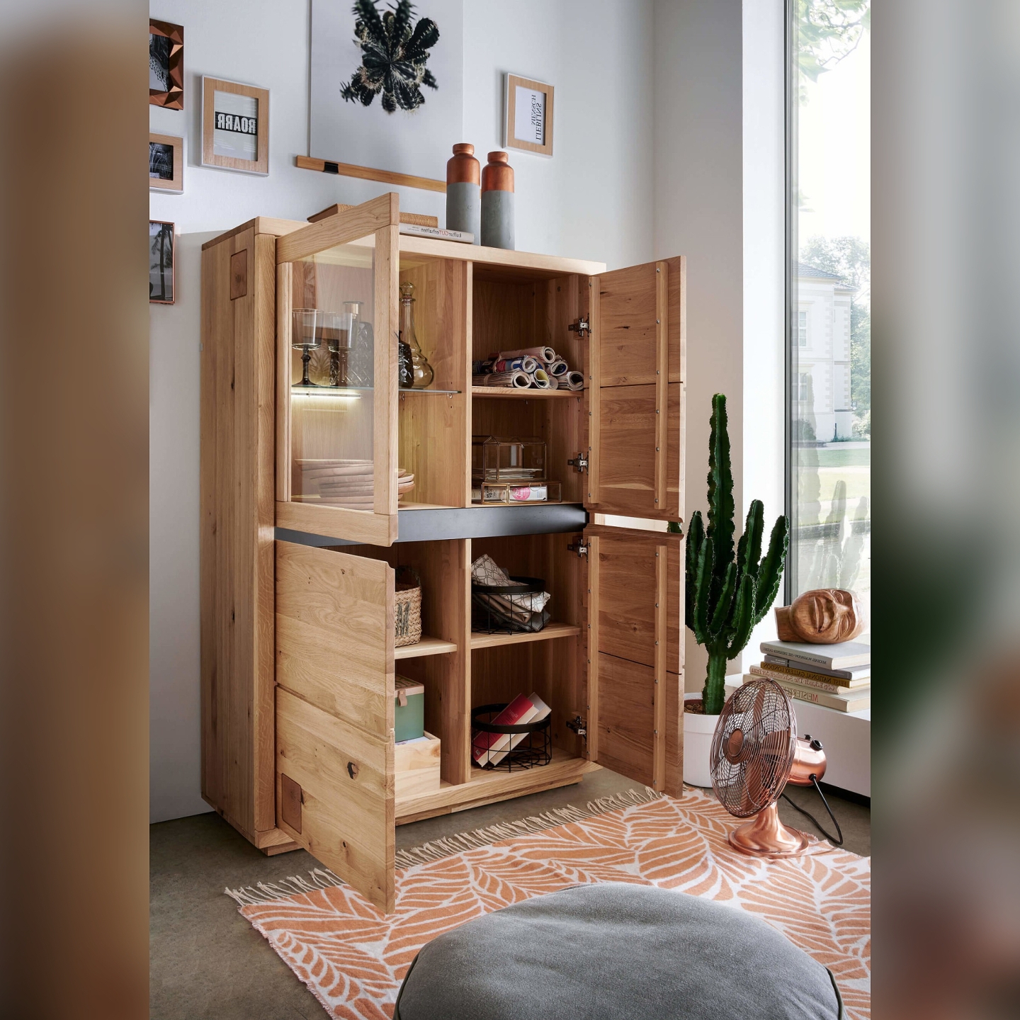 👉 Wymiary dopasowane do salonu i jadalni: wysokość 148 cm zapewnia pojemność bez przytłaczania przestrzeni.