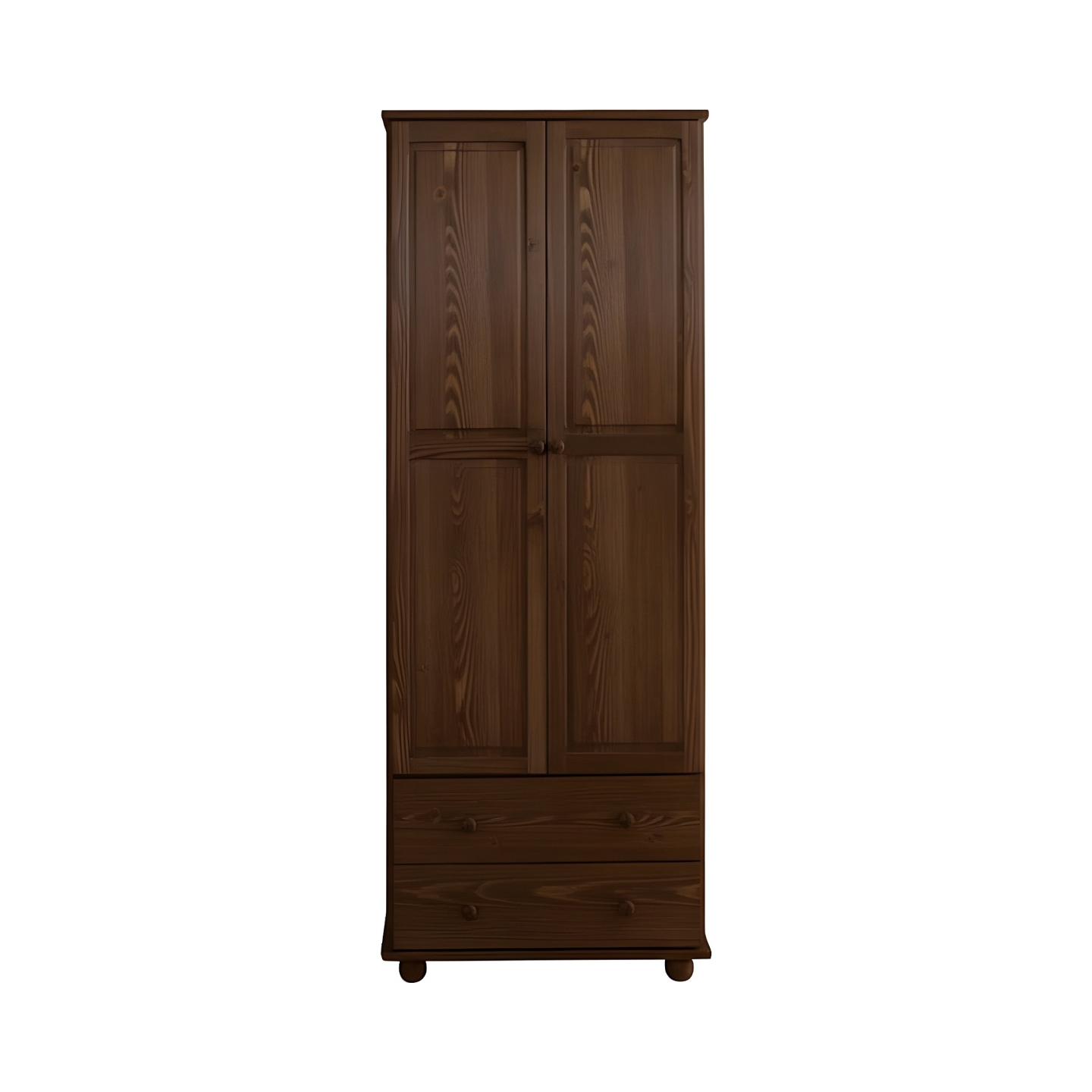 Szukasz wysokiej, klasycznej szafy drewnianej, idealnej do przechowywania wiszącej odzieży? Prezentujemy szafę sosnową z drążkiem i szufladami. Dzięki głębokości 62 cm, szafa zapewnia wystarczająco dużo miejsca, by swobodnie wieszać kurtki i płaszcze. Mebel ten został wykonany w całości z drewna sosnowego, wykończonego bejcą, który doskonale zabezpiecza drewno, jednocześnie eksponując jego naturalny, ciepły odcień. Z wymiarami 85 cm szerokości i 200 cm wysokości, maksymalnie wykorzystuje dostępną przestrzeń.