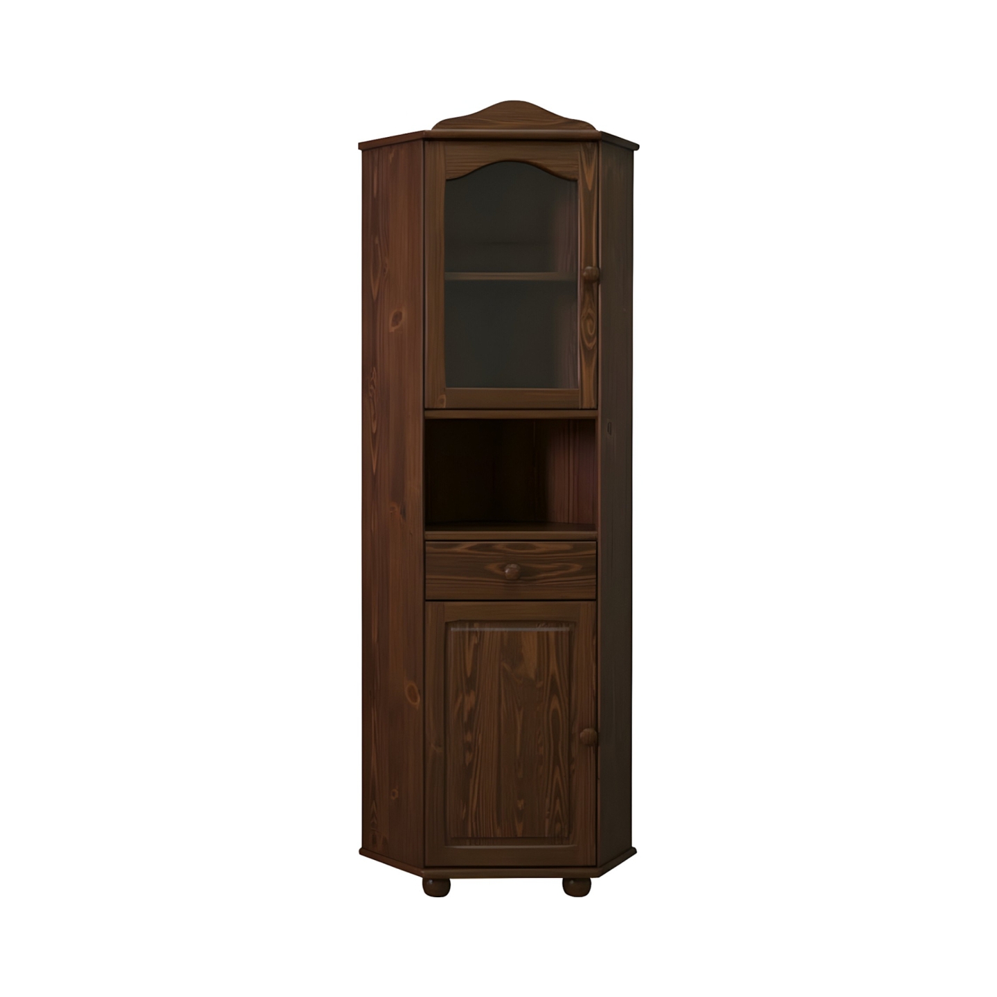 | Nazwa mebla | Kredens sosnowy narożny z szufladą i witryną |
