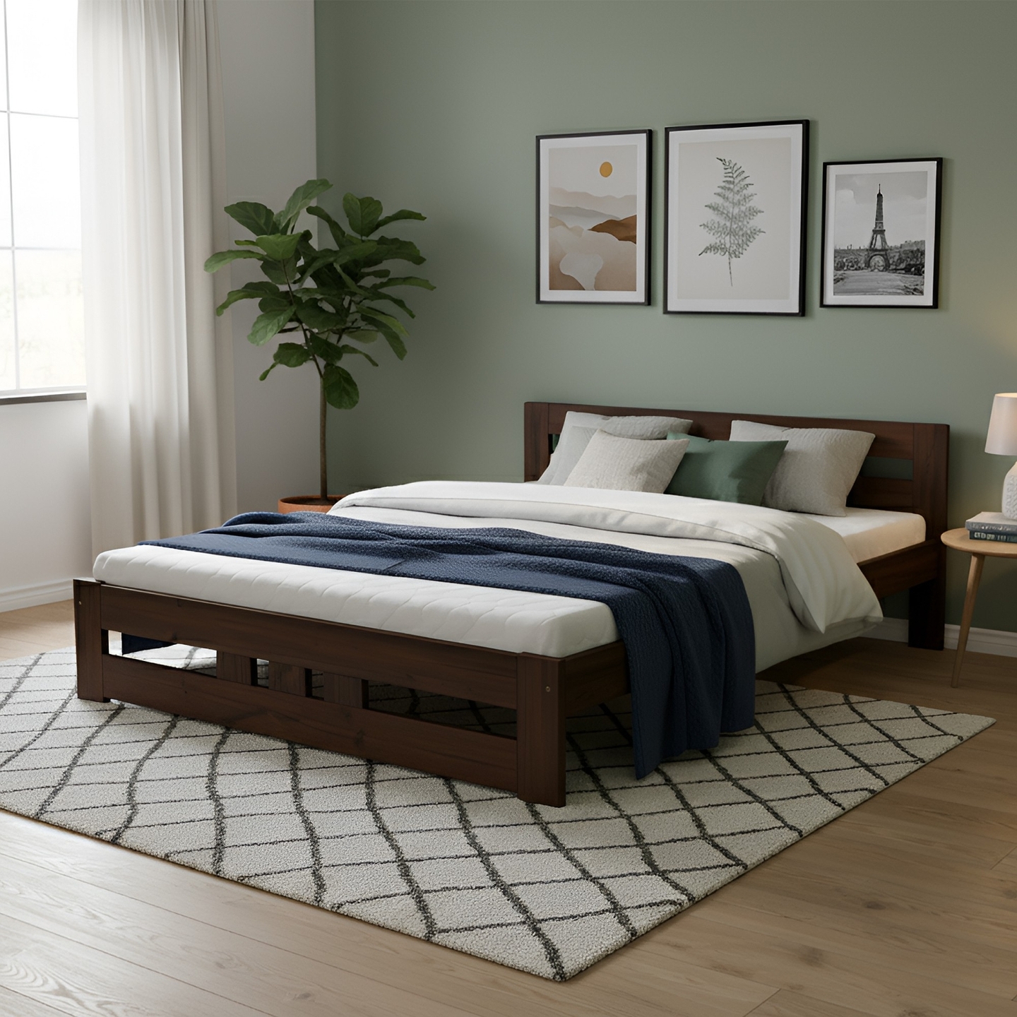 Luksusowe i przestronne łóżko sosnowe 180x200 cm (King Size), stworzone z myślą o maksymalnym komforcie. Konstrukcja z **litej sosny** o grubości 2,5 cm zapewnia najwyższą stabilność i trwałość, idealną do dużej sypialni. Bejca podkreśla piękną strukturę drewna.