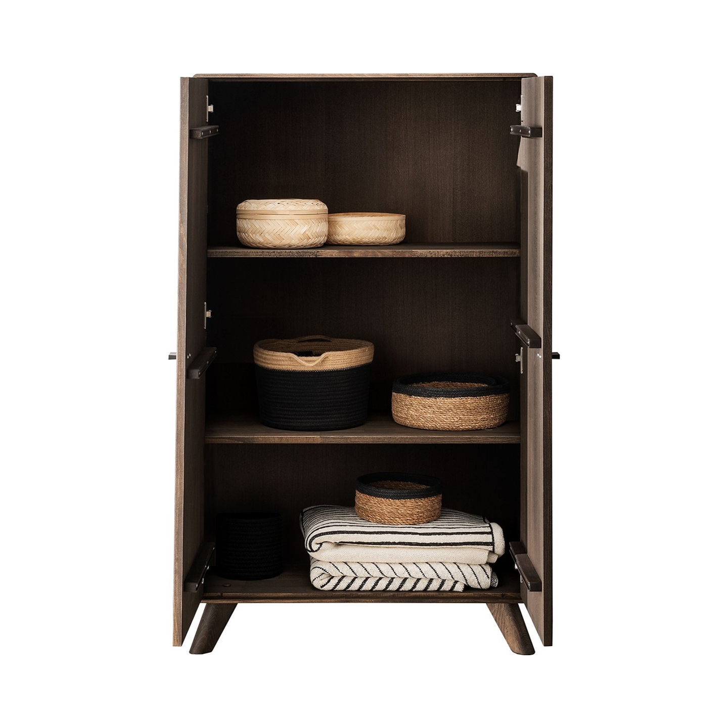 • Minimalistyczne nóżki: Dodają kredensowi wizualnej lekkości, pomimo jego solidnej, bukowej konstrukcji.