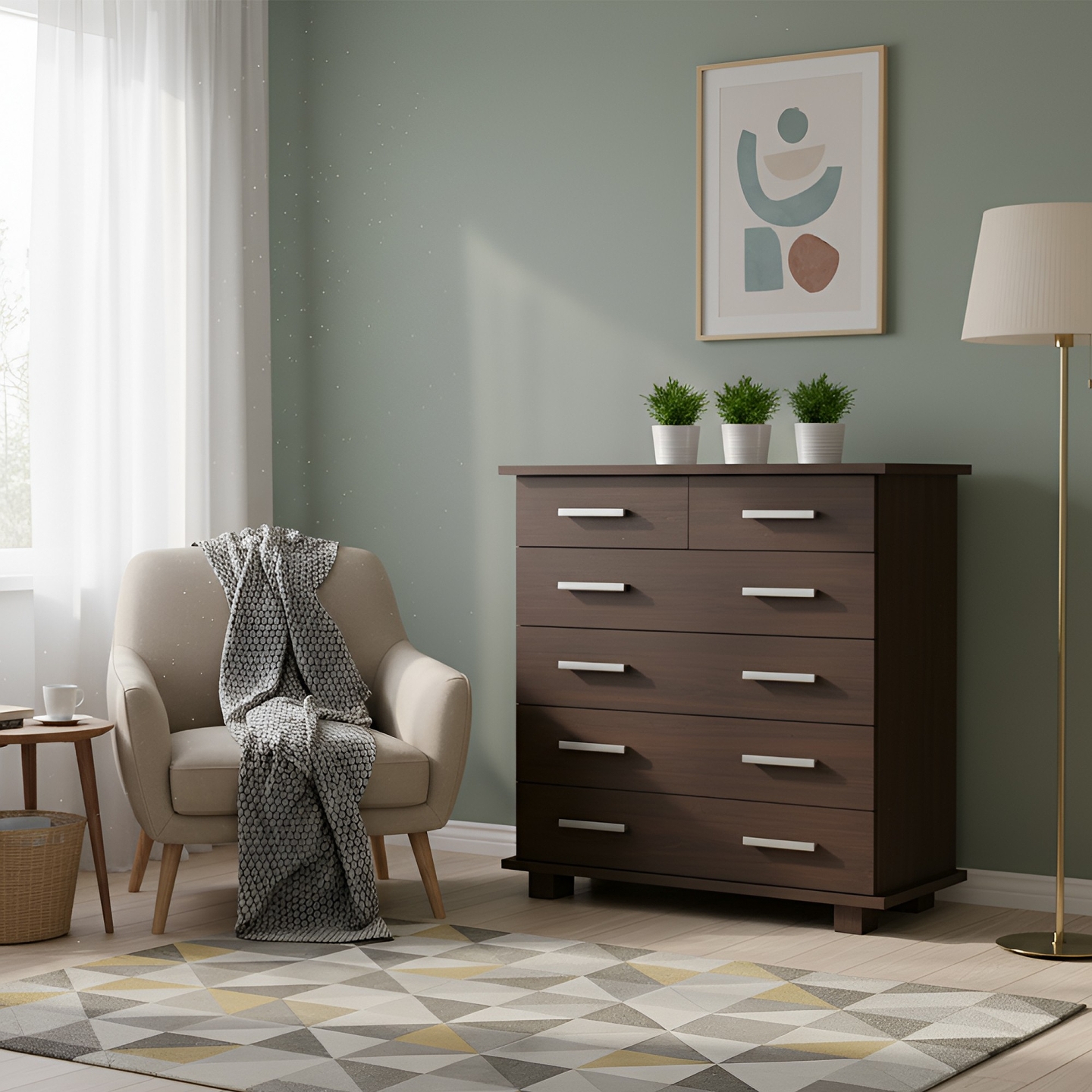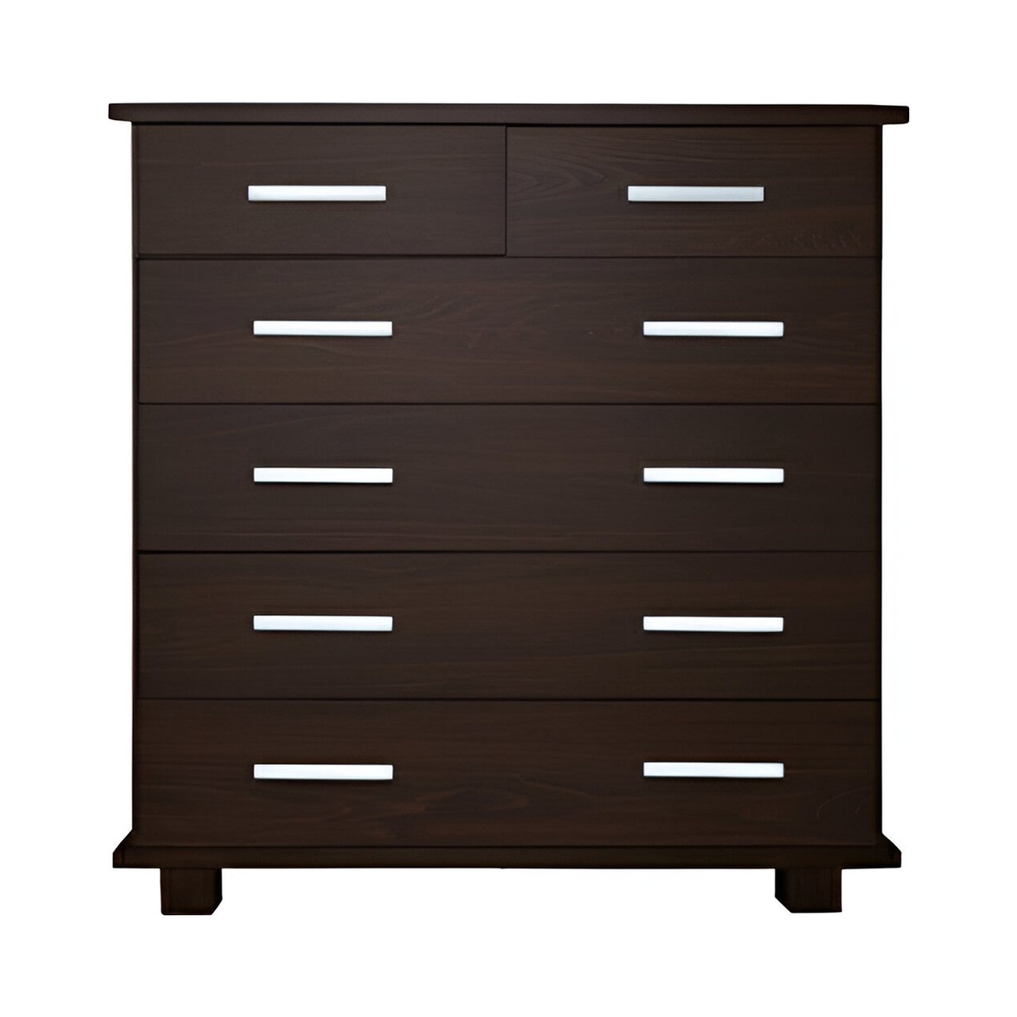 Elegancka komoda o wysokości 91 cm, wykonana w całości z twardego drewna bukowego. Jest to solidny i pojemny mebel, który doskonale sprawdzi się do przechowywania w sypialni. Stoi na estetycznych, prostokątnych nóżkach drewnianych, co nadaje jej lekkości.