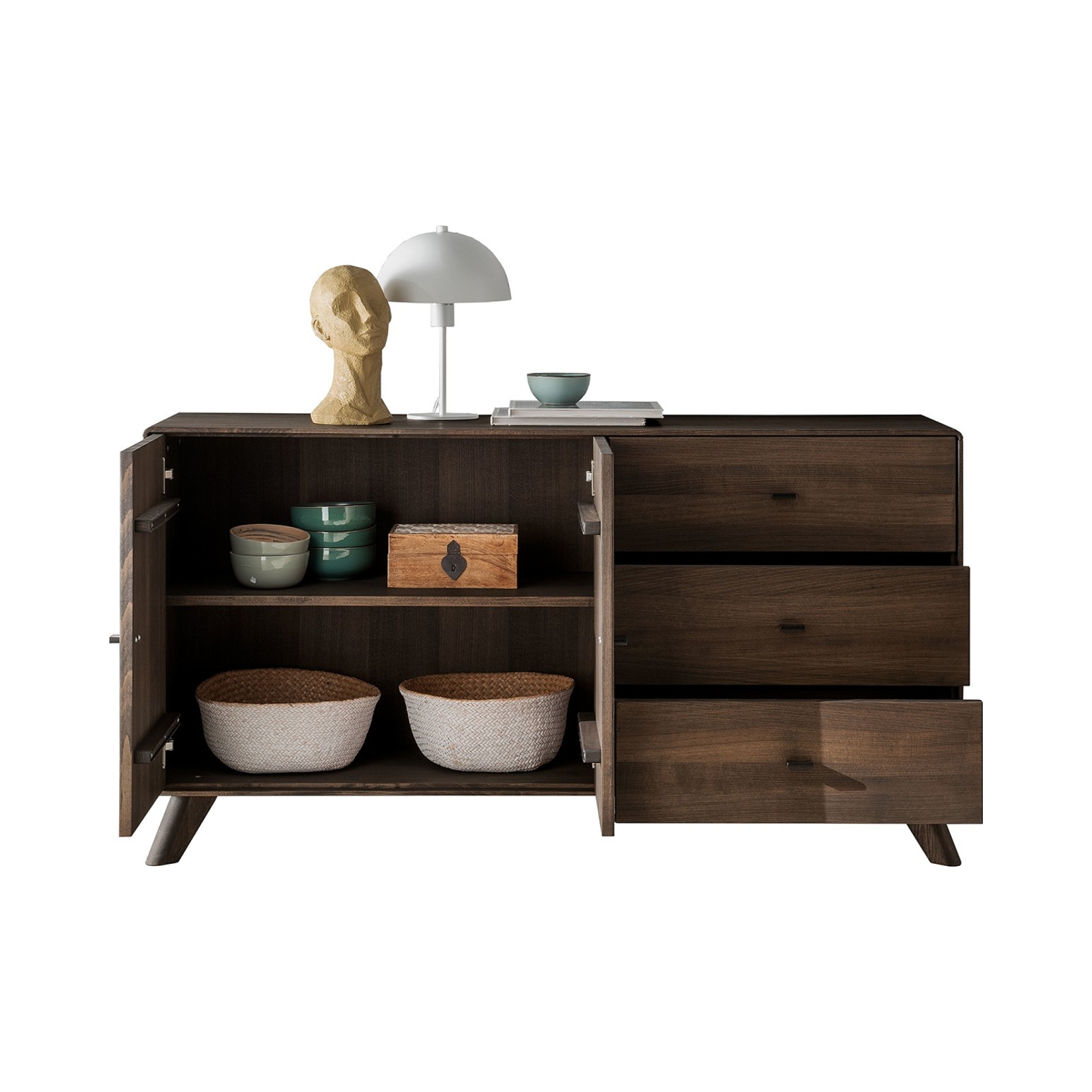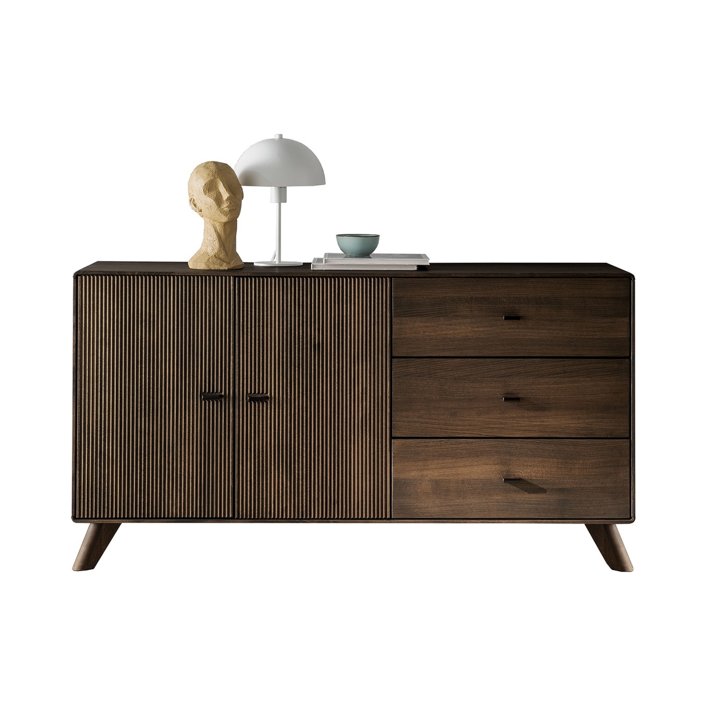 Odkryj połączenie nowoczesnego designu i mistrzowskiego rzemiosła, wybierając komodę bukową I Doryda. Ten mebel, zaprojektowany z myślą o współczesnych wnętrzach, został wykonany z litego drewna bukowego, które jest cenione za trwałość, wytrzymałość oraz odporność na upływ czasu. Komoda o szerokości 140,8 cm oferuje idealne proporcje do salonu czy jadalni. Oryginalny projekt podkreślają ryflowane (frezowane) fronty i drzwi, które dodają komodzie atrakcyjnego, teksturalnego wyglądu. Wykończenie olejem tytoń (tabak) nadaje bukowi głęboki, elegancki odcień. Dzięki funkcji soft-close w drzwiach i szufladach, użytkowanie mebla jest ciche i komfortowe. Z wagą 54,7 kg i dostawą w całości zmontowanej, komoda ta stanowi piękny i funkcjonalny element wystroju wnętrza, gotowy do natychmiastowego użytku.