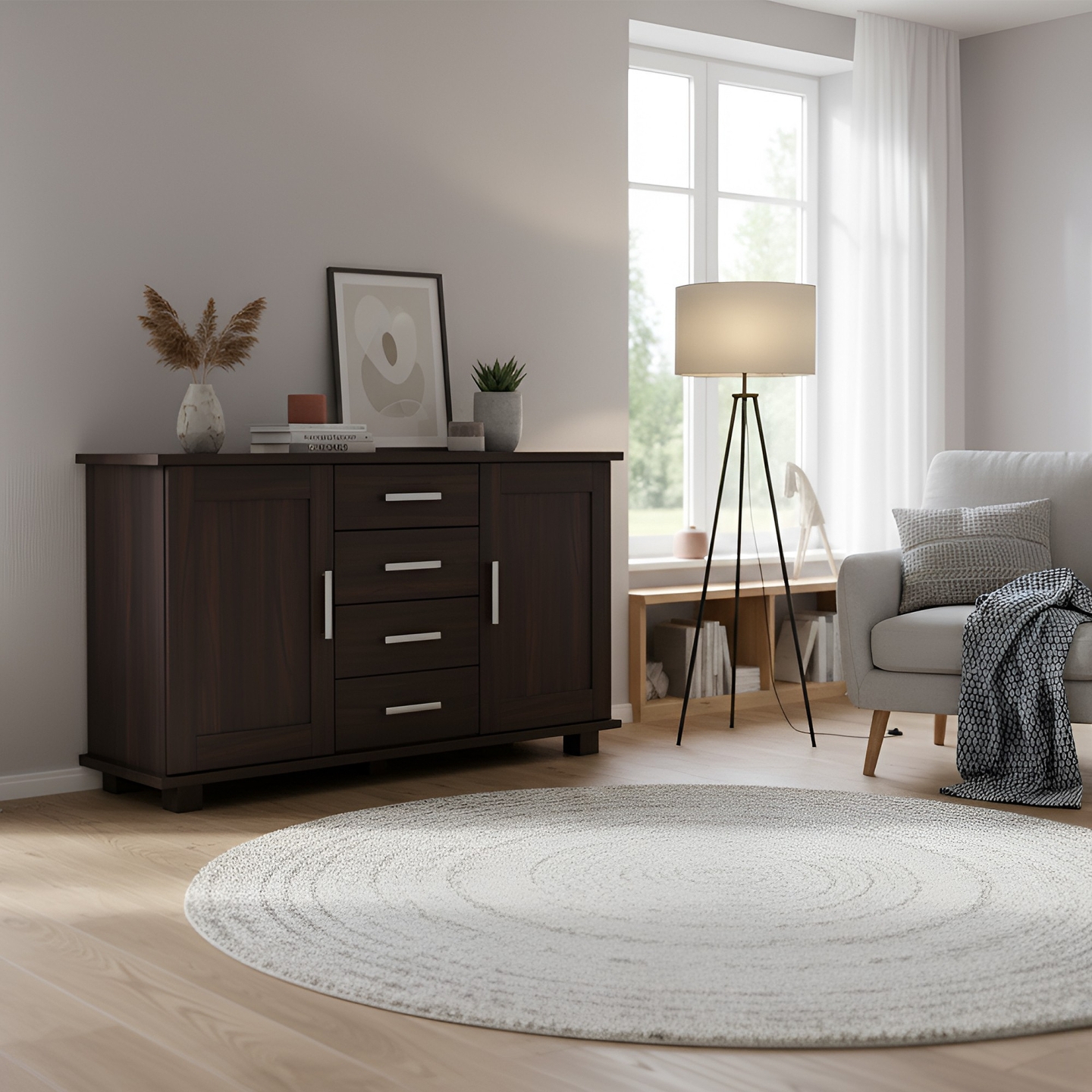 Funkcjonalna komoda o szerokości 125 cm, w całości wykonana z twardego drewna bukowego. Ten mebel łączy w sobie pojemność z eleganckim, naturalnym wykończeniem bejcą, idealnie pasującym do sypialni i salonu. Stoi na stabilnych, drewnianych nóżkach, co ułatwia utrzymanie czystości pod meblem.
