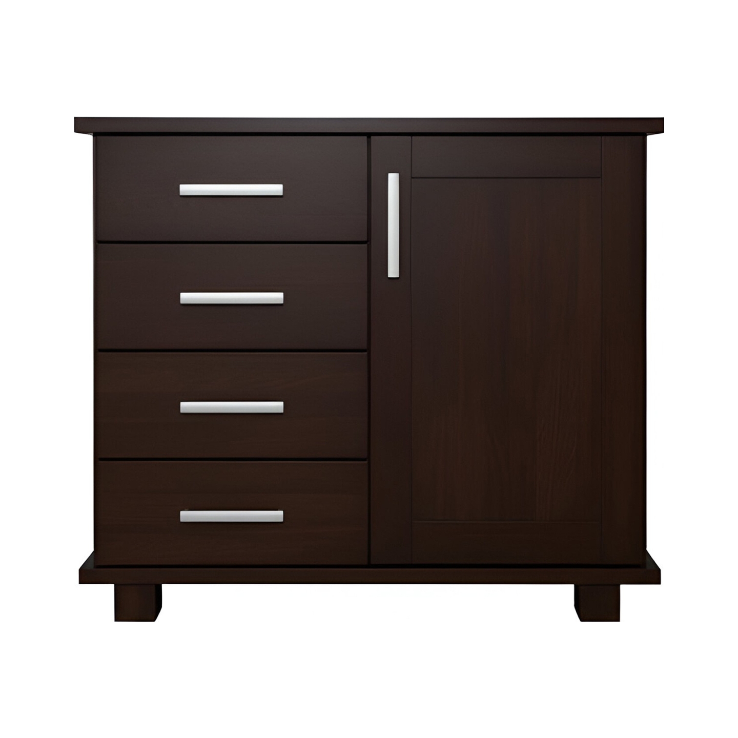 Kompaktowa komoda o szerokości 85 cm, wykonana w całości z twardego drewna bukowego. Jest to funkcjonalny mebel do sypialni lub pokoju dziennego, łączący szuflady z zamykaną przestrzenią. Fronty mebla wykonane są z bezsęcznego drewna, a wykończenie bejcą eksponuje naturalne piękno buku.
