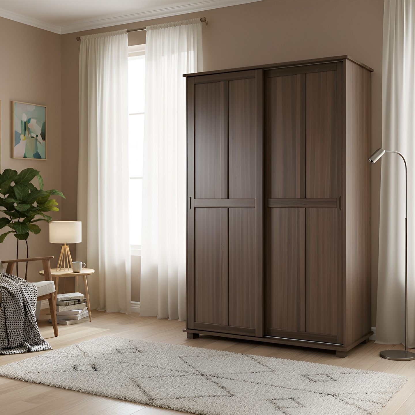 Pojemna szafa o szerokości 132 cm, wykonana w całości z twardego drewna bukowego, z praktycznym systemem drzwi przesuwnych. To solidny i nowoczesny mebel, który pozwala zaoszczędzić przestrzeń dzięki bezkolizyjnemu otwieraniu.