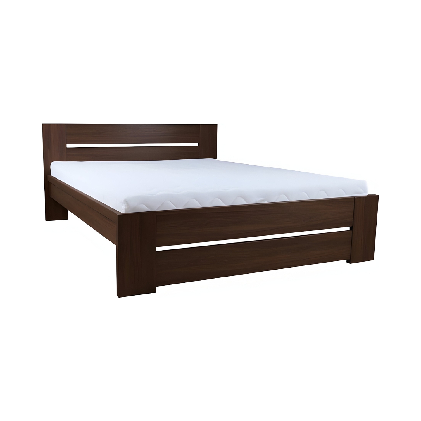 Ten model charakteryzuje się nowoczesnym balansem: wysoki zagłówek (88 cm) jest idealny do opierania się, podczas gdy niższy zanóżek (43 cm) optycznie powiększa przestrzeń. Niewidoczne mocowanie za pomocą dużych mimośrodów zapewnia, że łóżko pozostanie stabilne i ciche przez lata użytkowania.
