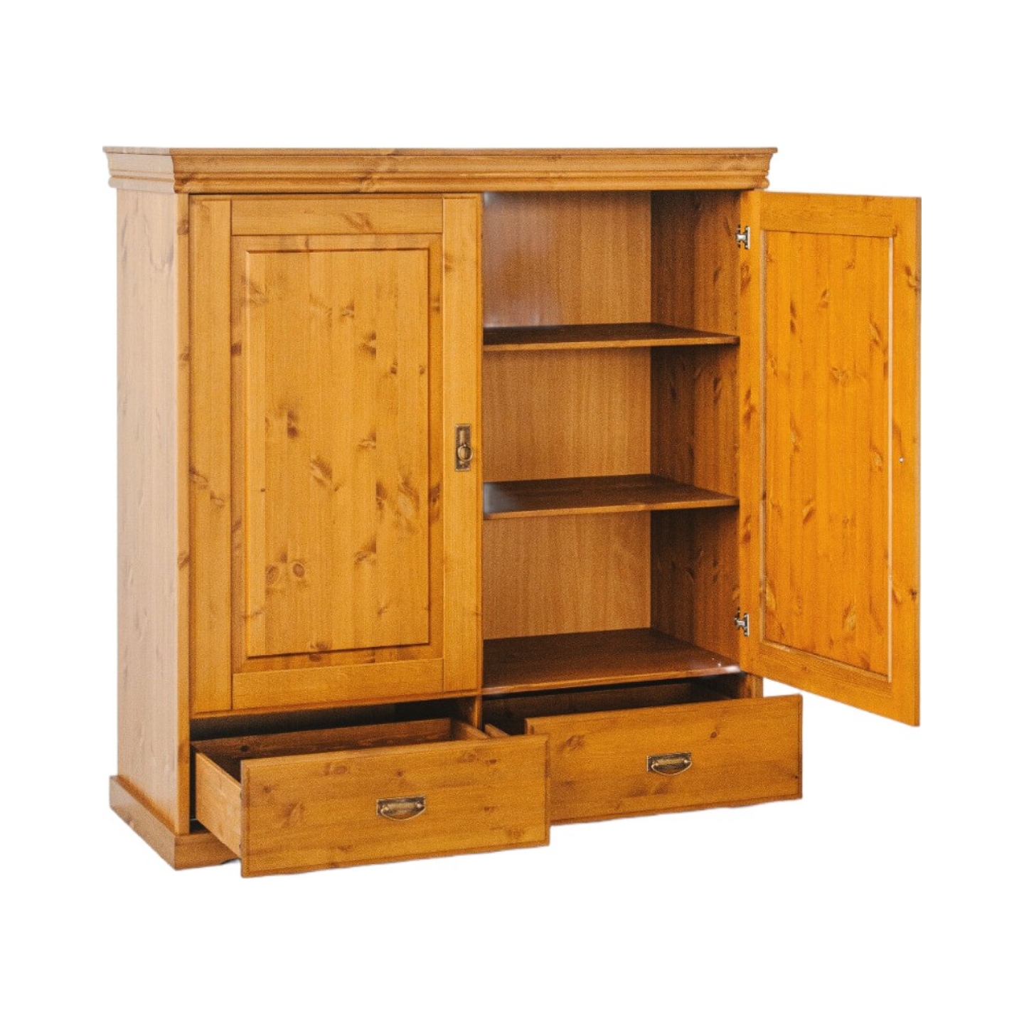 • Idealna do Przechowywania: Połączenie dwóch szuflad i pojemnej części z trzema półkami maksymalizuje przestrzeń na bieliznę, pościel i ubrania.