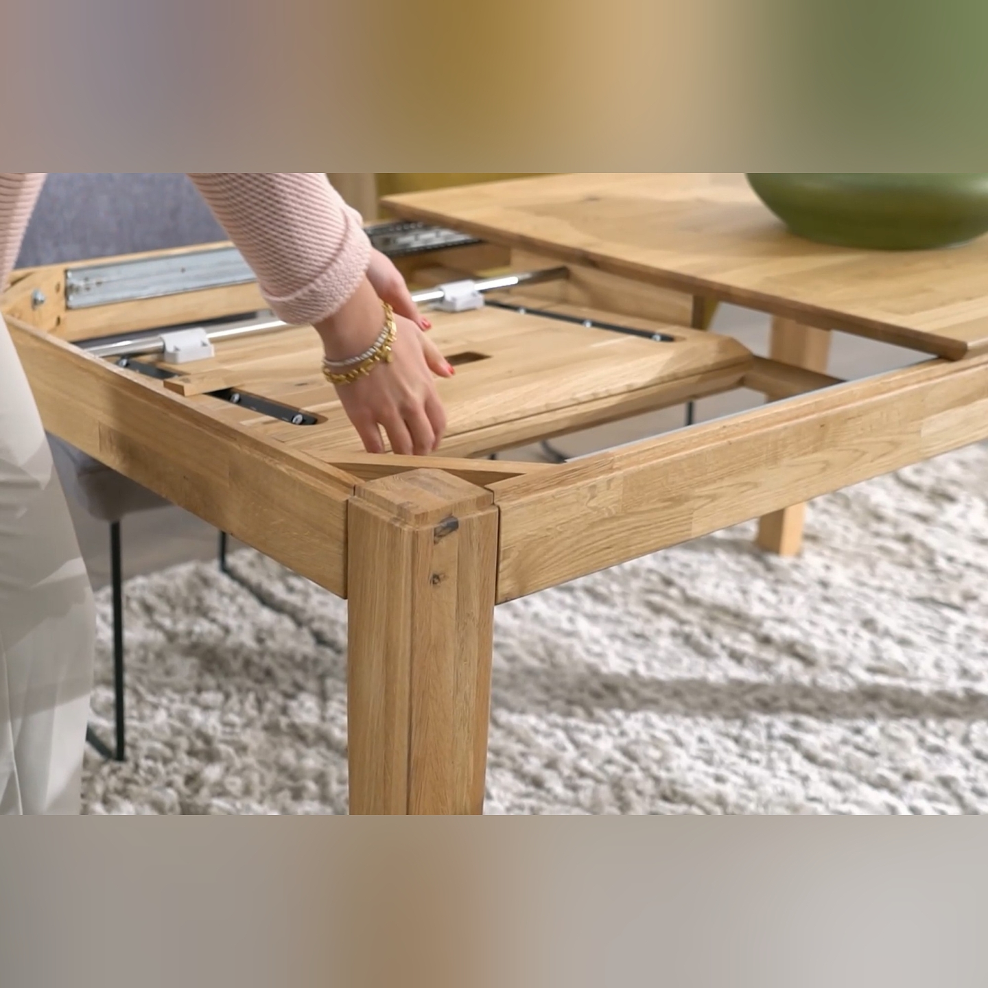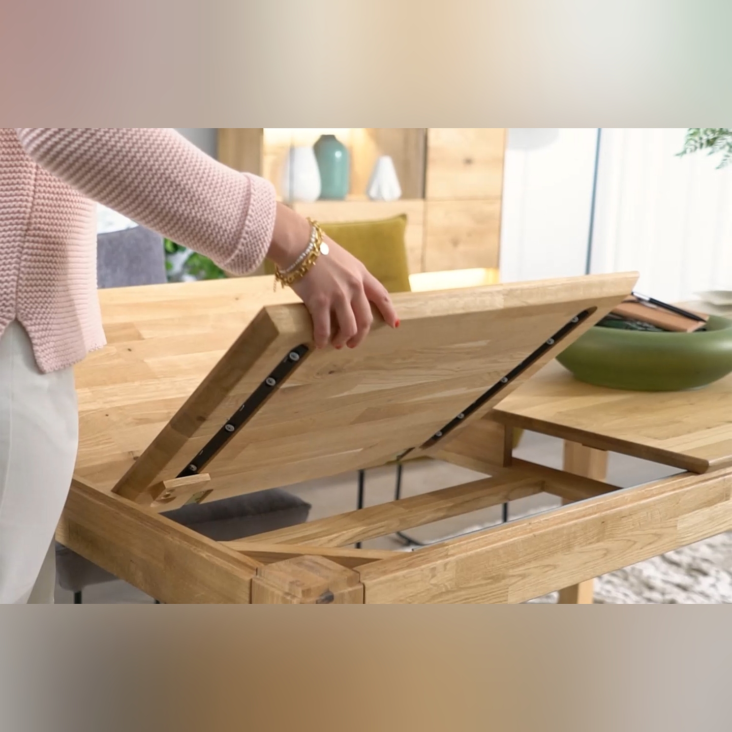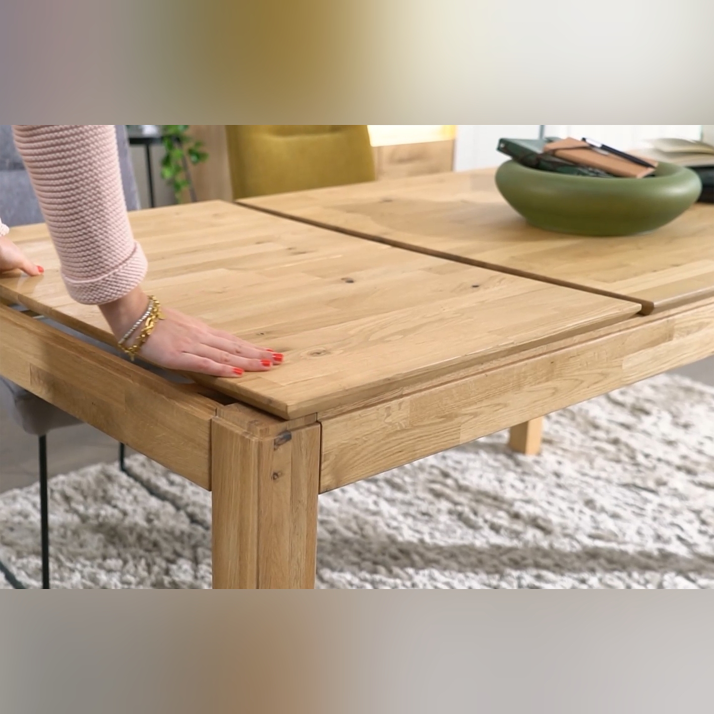 Ten praktyczny i stylowy stół rozkładany z drewna dębowego to doskonały wybór dla osób ceniących sobie naturalne materiały oraz funkcjonalne rozwiązania. Jego uniwersalny design sprawia, że doskonale komponuje się z różnymi stylami wnętrz, dodając im ciepła i elegancji. Dzięki możliwości rozłożenia, zawsze będziesz przygotowany na przyjęcie gości.