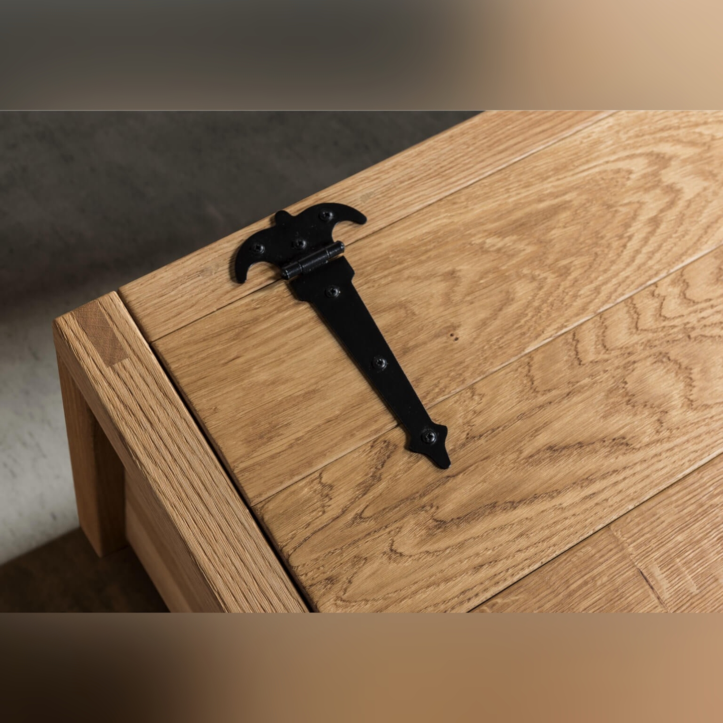 Cechy dębu sęcznego (tzn. sęki, przebarwienia, różnice w słojach, dziury po sękach, spękania) nie są wadą mebla i nie podlegają reklamacji. Wszystkie powstałe cechy na skutek rozeschnięcia się i pracy drewna zabezpieczane są przed dalszym rozchodzeniem oraz stosowane są celowo dla podkreślenia naturalnego piękna materiału z którego wykonany jest mebel.