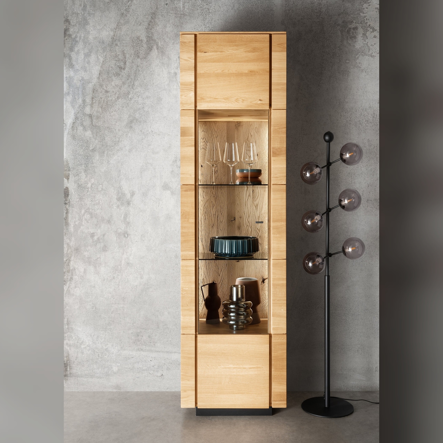 Wprowadź do swojego wnętrza szlachetność i funkcjonalność dzięki witrynie dębowej I Corazon. Ta smukła, wysoka witryna (206,5 cm) wykonana jest z solidnego litego drewna dębowego, gwarantując niezrównaną trwałość i ponadczasową elegancję. Jako witryna pojedyncza, idealnie nadaje się do mniejszych przestrzeni, oferując jednocześnie otwartą przestrzeń oraz fronty ze szkła dymionego do efektownego eksponowania książek, szkła, porcelany czy innych dekoracji. Mebel posiada oświetlenie w zestawie, które pięknie podkreśla jego zawartość. Tylna widoczna ściana, wykonana z dekoracyjnego panelu piaskowanego, nadaje witrynie oryginalny design. Elastyczność aranżacyjną zapewnia możliwość otwierania drzwi w prawą lub lewą stronę. Masywna waga 89 kg świadczy o użyciu dużej ilości dębu, a mebel jest dostarczany w całości zmontowany.