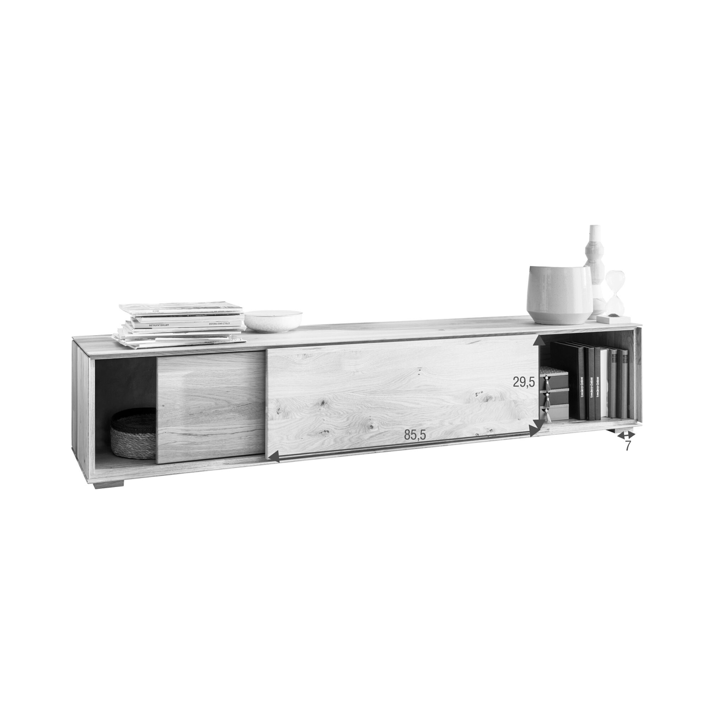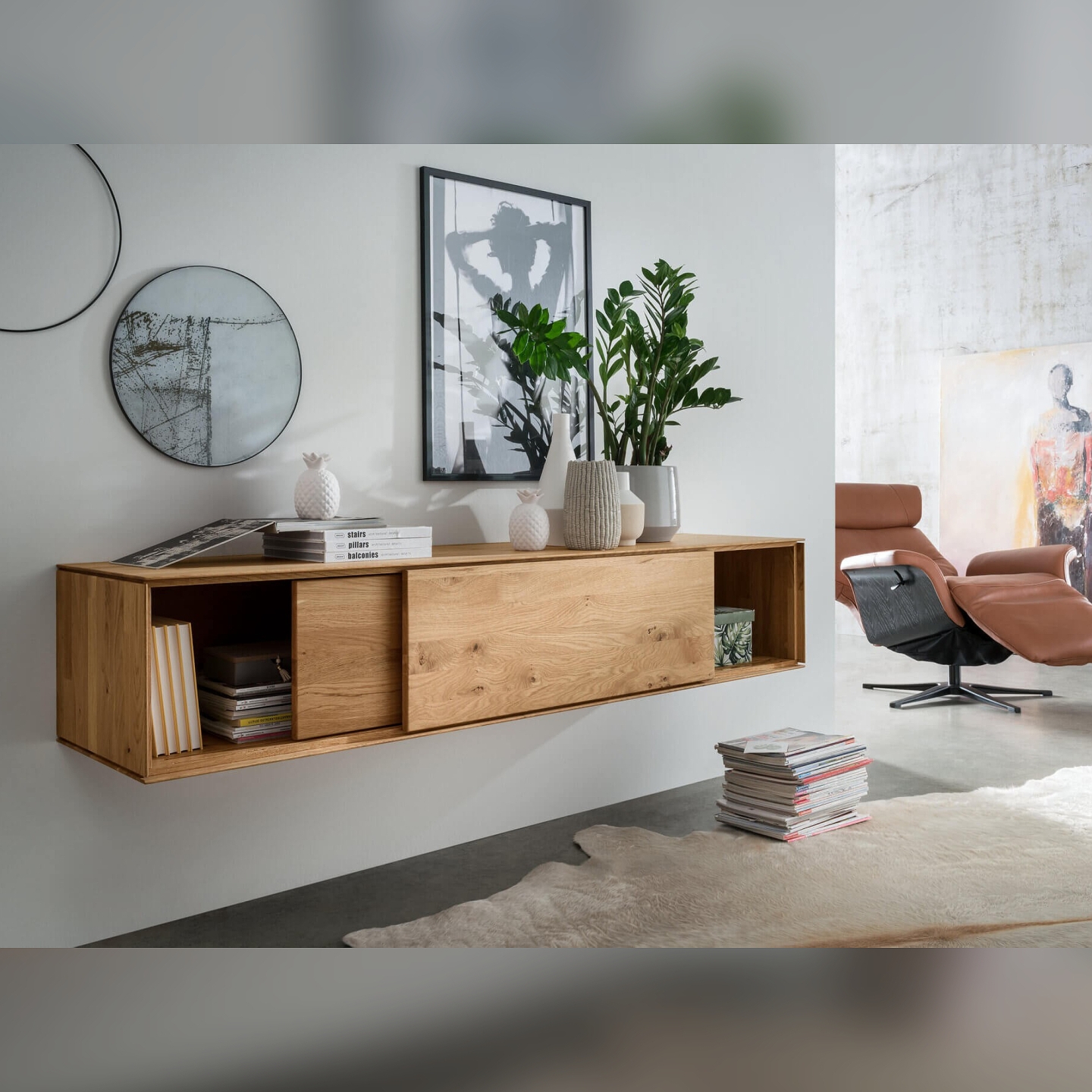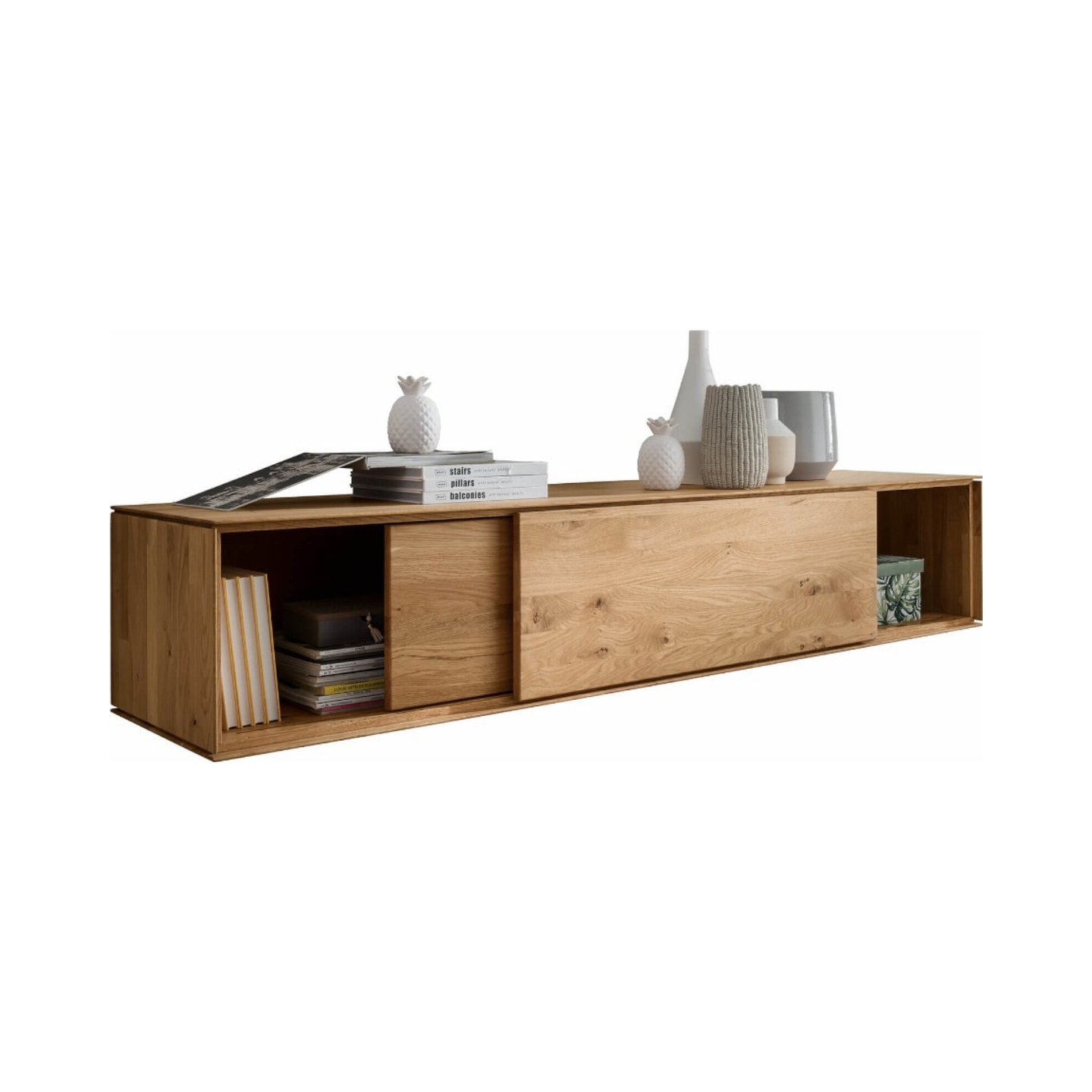 Szafka RTV dębowa II Momos to wyjątkowy i niespotykany mebel z litego drewna dębowego, który stanowi solidną bazę dla Twojego domowego centrum rozrywki. Jej nowoczesny, niski profil (wysokość 33 cm) w połączeniu z imponującą szerokością 170 cm idealnie wpisuje się w najnowsze trendy aranżacyjne. Wykonanie z wytrzymałego dębu, wykończonego bezbarwnym olejem, gwarantuje, że szafka jest niezwykle odporna na uszkodzenia i zarysowania, zachowując swój nienaganny wygląd przez długie lata. Unikalną zaletą tego modelu jest jego wszechstronność — w zestawie znajdują się dwie podstawy (wisząca i stojąca), co otwiera szerokie i ciekawe możliwości aranżacyjne.
