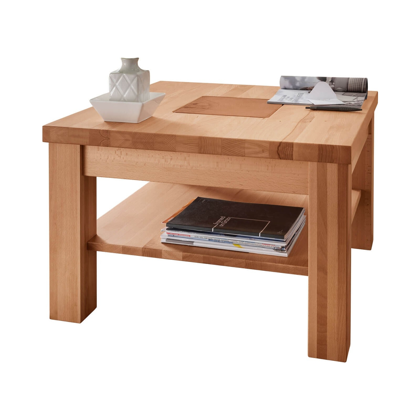 Stolik kawowy II to popularny wybór do salonu ze względu na trwałość i wytrzymałość litego drewna bukowego. Półka pod blatem zapewnia dodatkowe miejsce na pilot, gazetę. Stolik kawowy posiada stabilną konstrukcję oraz oryginalny element wycięty z końca belek i umieszczony na środku blatu.