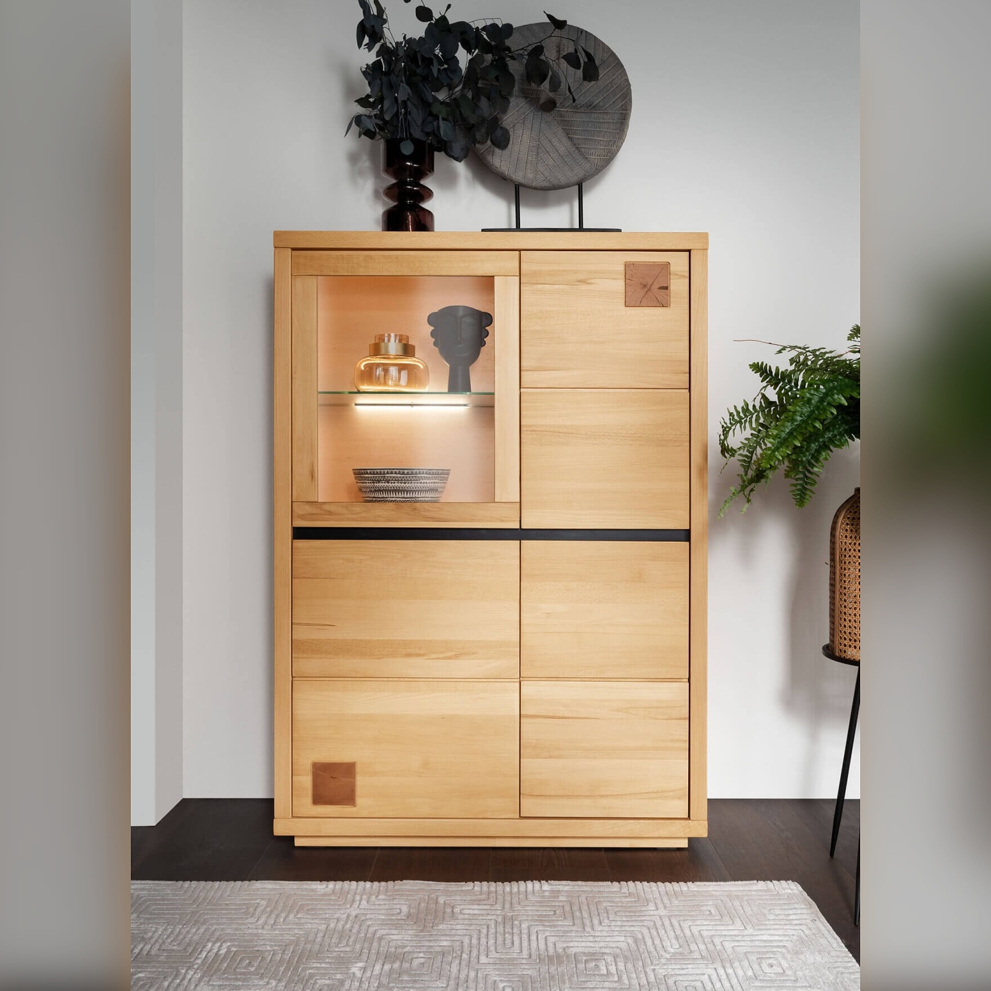 Kredens I z litego drewna bukowego. Mebel przeznaczony do przechowywania przedmiotów w jadalni, takich jak talerze, sztućce, porcelana itp. Często wykorzystywany również w aranżacji pokoju dziennego. Cechuje się wysoką jakością i trwałością, a także eleganckim i estetycznym wyglądem.