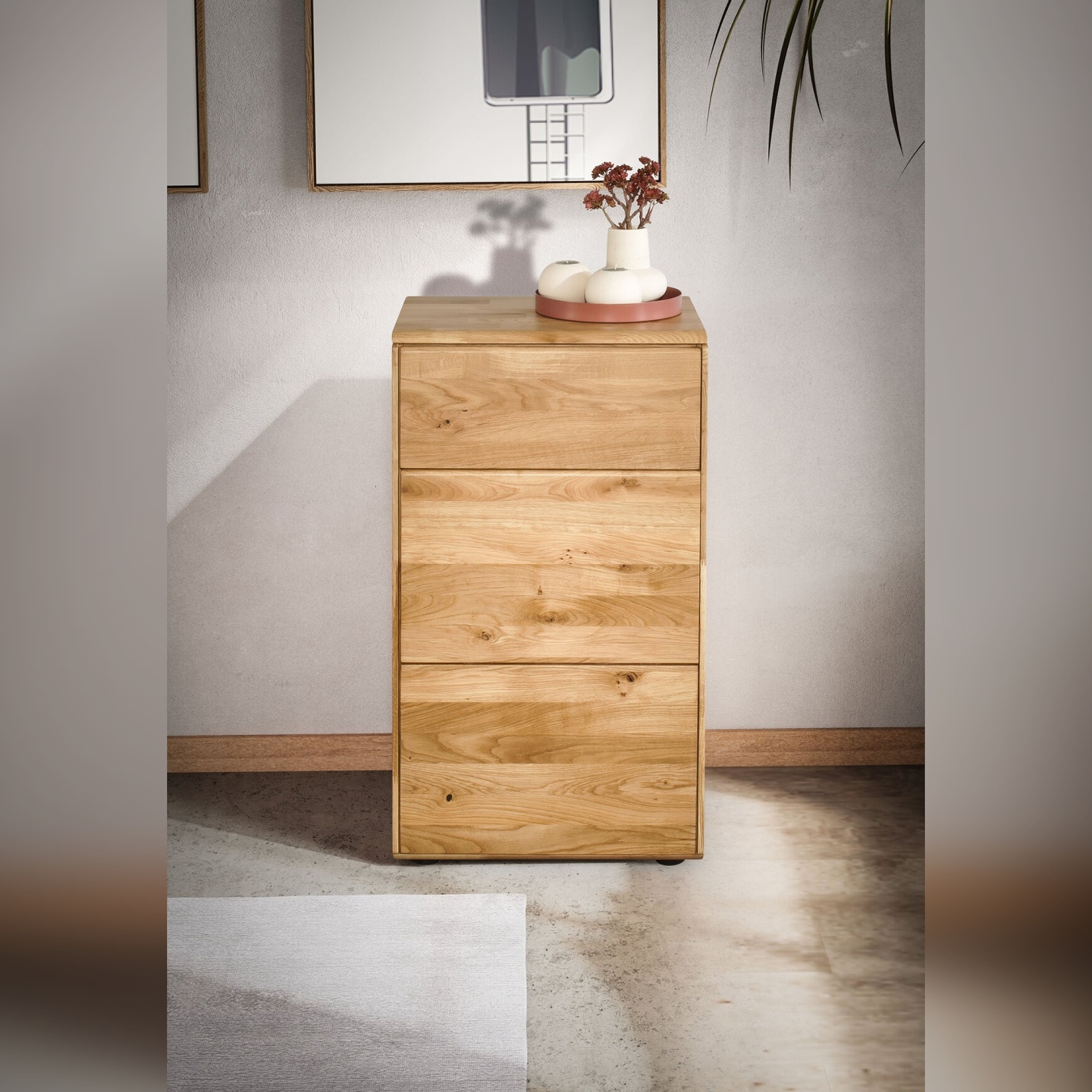 Niewielka komoda dębowa, wyposażona w jedną szufladę oraz drzwi, stanowi elegancki i funkcjonalny element wystroju wnętrza, idealny do każdego pomieszczenia. Jej zaokrąglone brzegi nadają meblowi delikatny charakter, a jednocześnie sprawiają, że jest bezpieczny w użytkowaniu, szczególnie w przypadku domów z małymi dziećmi. Niezależnie od tego, czy znajduje się w sypialni, salonie czy przedpokoju, taka komoda dębowa stanowi doskonałe rozwiązanie do przechowywania drobnych przedmiotów i dodatkowo dodaje uroku aranżacji wnętrz.