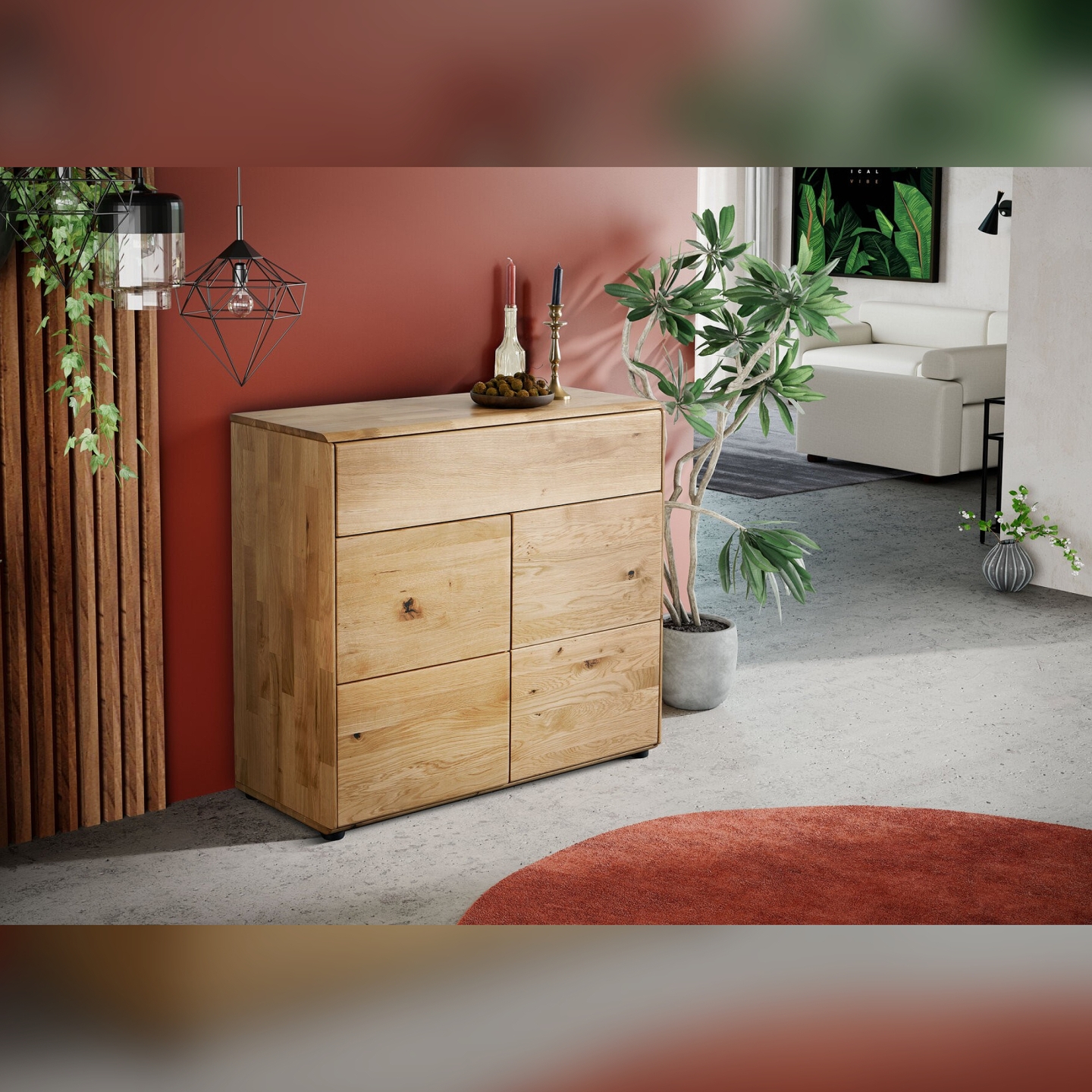 Komoda dębowa II wykonana z litego drewna dębowego to nie tylko trwałe, ale i eleganckie rozwiązanie do przechowywania. Jej jedna duża szuflada zamykana na system push to open oraz dwoje drzwi sprawiają, że zapewnia łatwy dostęp do przechowywanych rzeczy, jednocześnie zachowując estetyczny wygląd. Dzięki wykorzystaniu solidnego drewna dębowego, komoda ta nie tylko będzie funkcjonalna, ale również dodatkowo wniesie do pomieszczenia naturalny urok i ciepło.