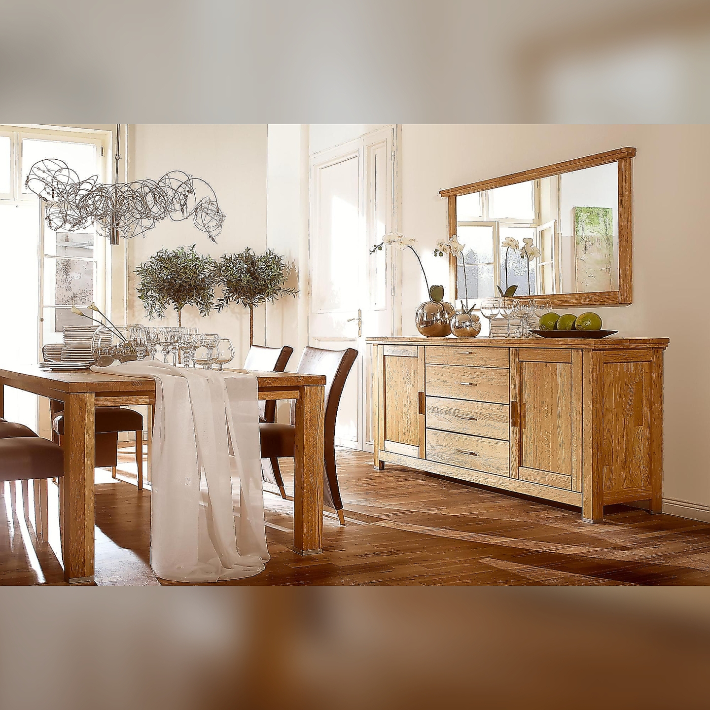 Dębowe elementy wykończone olejem natura zachowują naturalny kolor i widoczne słoje. Olejowanie zwiększa odporność na codzienne użytkowanie i pozwala łatwo odświeżyć powierzchnię w przyszłości. Symetryczny układ frontów i regularna geometria pasują do wnętrz klasycznych, skandynawskich i nowoczesnych.