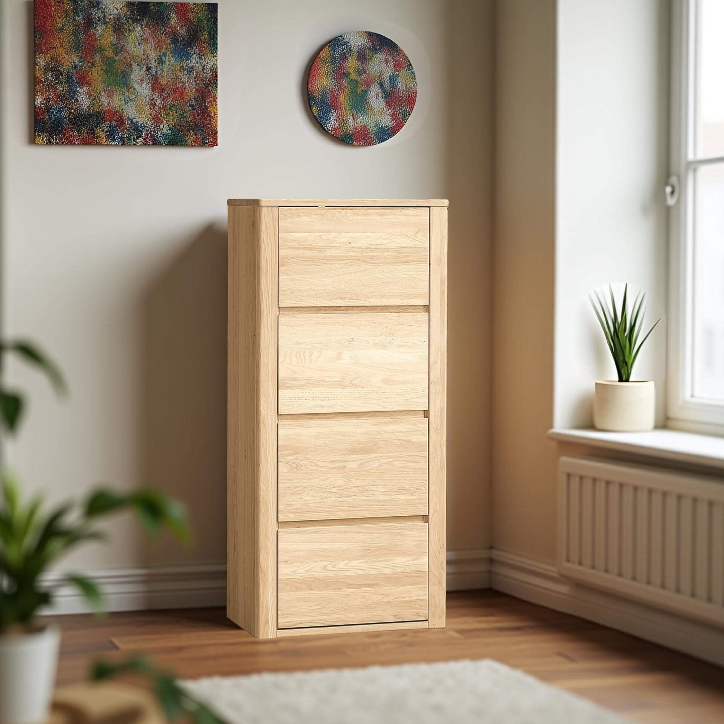 Odkryj funkcjonalność i nowoczesny design z komodą III dębową Orlando w wykończeniu olej bianco. Ta wysoka i smukła komoda to idealne rozwiązanie do przechowywania, które jednocześnie wniesie do Twojego wnętrza lekkość i skandynawski styl. Widoczna na zdjęciu, komoda Orlando, dzięki swojemu pionowemu układowi i jasnemu wykończeniu, doskonale sprawdzi się w mniejszych pomieszczeniach, oferując mnóstwo miejsca do przechowywania bez przytłaczania przestrzeni. Wykonana z wysokiej jakości drewna dębowego i płyty fornirowanej, gwarantuje solidność i trwałość na lata.