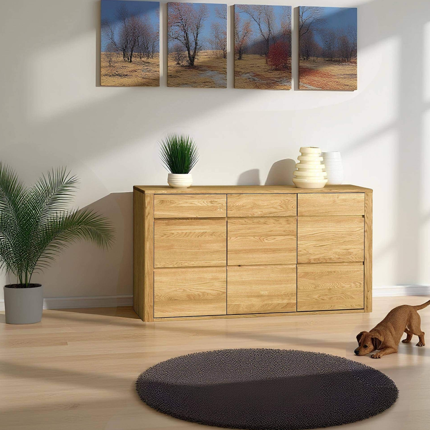 Przedstawiamy przestronną i elegancką komodę II dębową Orlando w naturalnym wykończeniu olej natura – idealne rozwiązanie do salonu, jadalni czy sypialni. Ta szeroka komoda, widoczna na zdjęciu z jej minimalistycznym, a zarazem solidnym wyglądem, to doskonały wybór dla osób ceniących sobie zarówno funkcjonalność, jak i estetykę. Naturalne, ciepłe drewno dębowe dodaje wnętrzu przytulności i ponadczasowego charakteru, idealnie wpisując się w różnorodne aranżacje. Wykonana z wysokiej jakości drewna dębowego i płyty fornirowanej, gwarantuje trwałość i niezawodność na długie lata.
