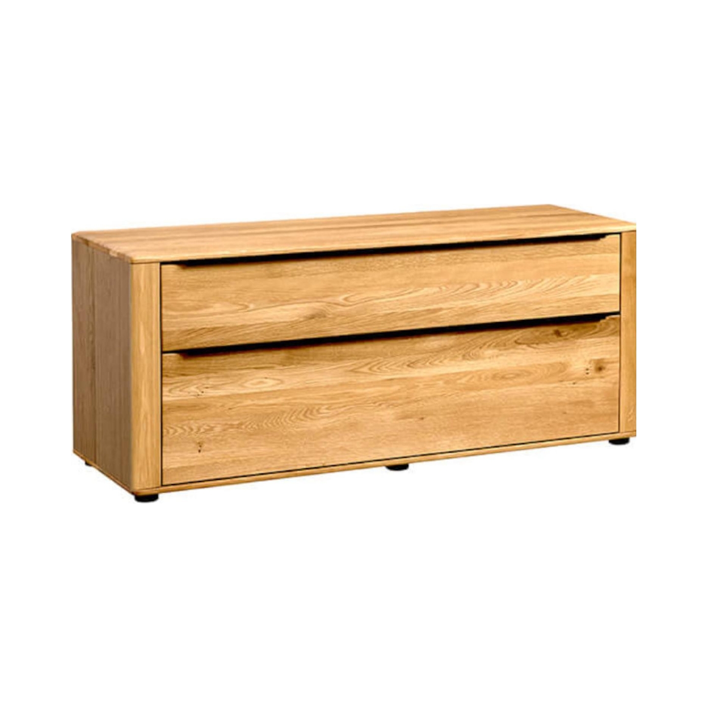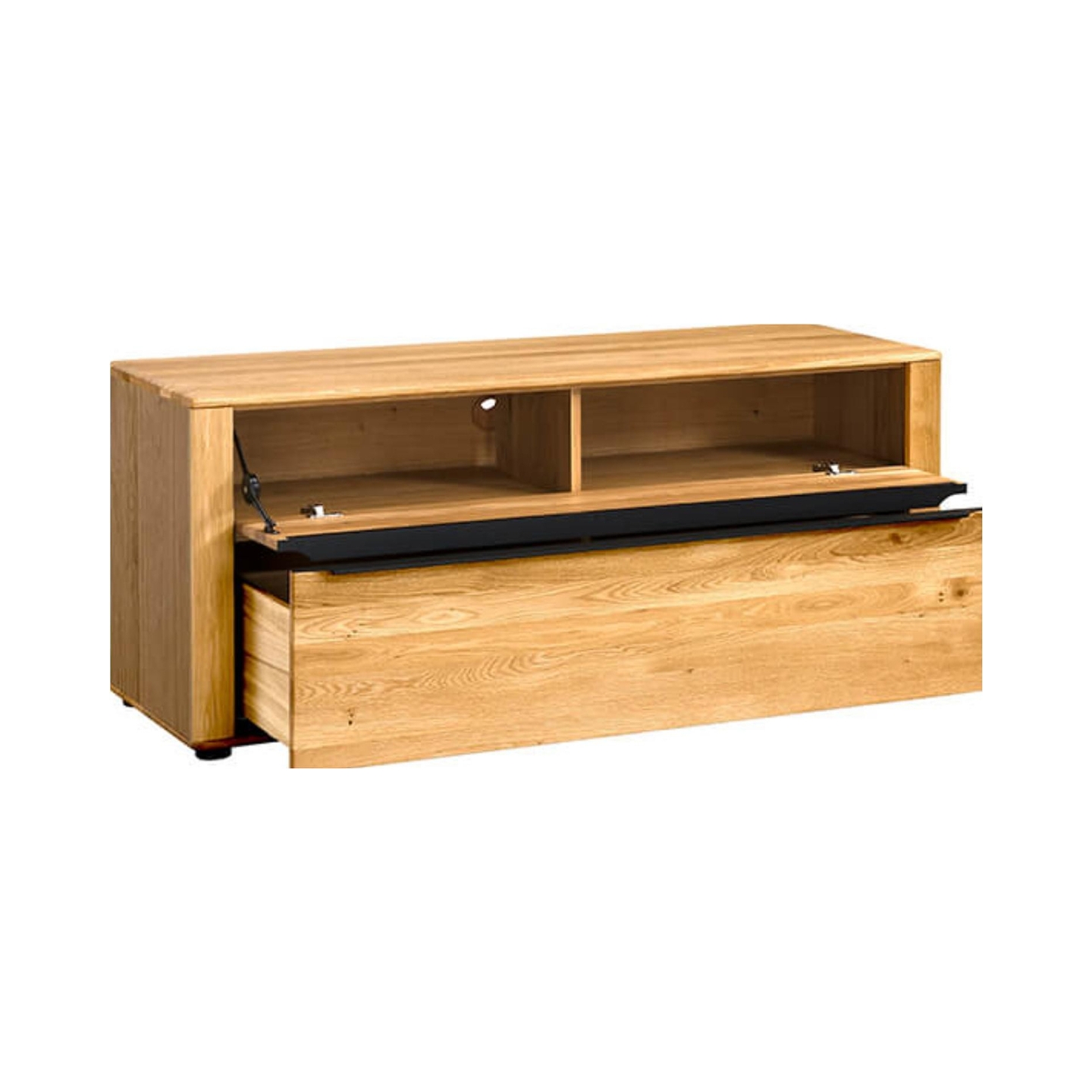Wzbogać swój salon o nowoczesną i funkcjonalną szafkę RTV I Luna, która doskonale łączy elegancję dębu z minimalistycznym designem. Prezentowana na zdjęciu szafka, wykonana z dębu sęcznego ciętego po długości (fronty) oraz płyty wiórowej fornirowanej dębem sęcznym (korpus), to synonim trwałości i naturalnego piękna. Jej szczotkowana powierzchnia i wykończenie naturalnym olejem podkreślają unikalne usłojenie drewna, nadając meblowi ciepłego i szlachetnego wyglądu. Z dwiema przestronnymi szufladami, szafka Luna oferuje dużo miejsca do przechowywania sprzętu RTV, płyt czy akcesoriów, pomagając w utrzymaniu porządku w salonie. Jest to mebel dostarczany w całości, zmontowany i gotowy do natychmiastowego użytku, co oszczędza Twój czas i wysiłek.