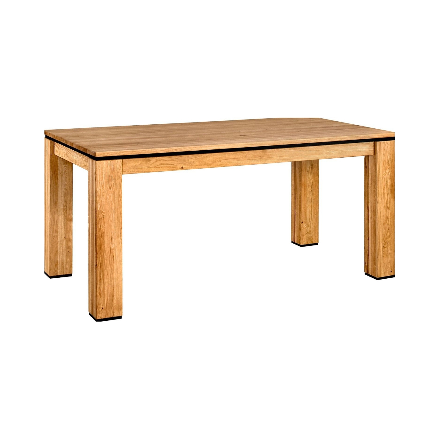 Prezentujemy Stół Faro II dąb sęczny 160×90 – solidny i elegancki mebel, który doskonale sprawdzi się w każdej jadalni lub przestronnym salonie. Wykonany z dbałością o najwyższą jakość, z dębu sęcznego ciętego po długości, stół ten zachwyca naturalnym pięknem drewna i jego unikalnym usłojeniem. Wykończenie olejem/woskiem natura podkreśla szlachetny charakter dębu, a subtelny czarny akcent pod blatem dodaje mu nowoczesności i elegancji. Na załączonym zdjęciu widać masywną konstrukcję stołu, którego naturalny kolor dębu doskonale kontrastuje z ciemnymi detalami.