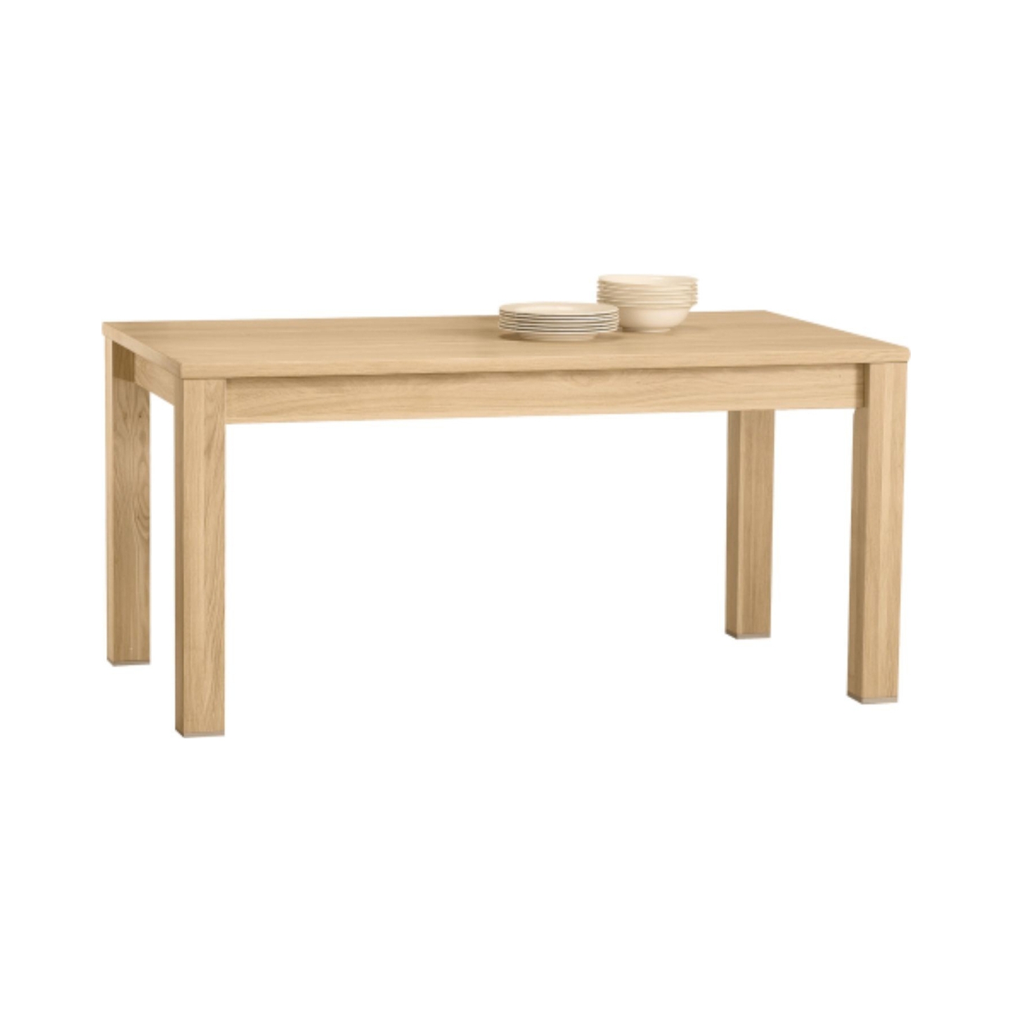 Stół dębowy Orlando to mebel, który staje się centralnym punktem każdego wnętrza, sprzyjając wspólnym chwilom i tworzeniu niezapomnianych wspomnień. Widoczny na zdjęciu stół w jasnym odcieniu dębu, z prostym, ale eleganckim blatem i solidnymi nogami, doskonale odzwierciedla jego funkcjonalność i ponadczasowy urok. Naczynia i miska z owocami na blacie podkreślają jego gotowość do przyjęcia gości. Dzięki możliwości rozłożenia, z łatwością przekształcisz go z kameralnego stołu rodzinnego w przestronne miejsce na większe uroczystości. Wybierz swoje ulubione wykończenie i ciesz się pięknem i praktycznością stołu Orlando, który wniesie do Twojego domu elegancję i komfort.