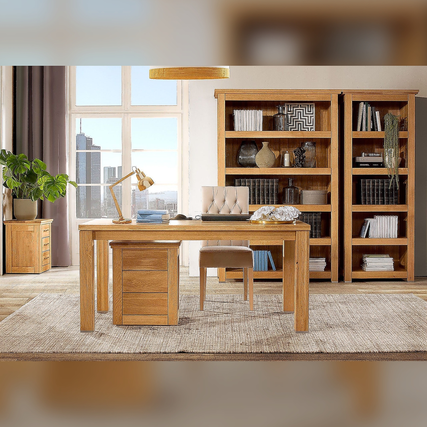 Regał II olej natura Porto to solidny i funkcjonalny mebel z prawdziwego dębu, zaprojektowany do codziennego użytkowania i długiej eksploatacji. Konstrukcja z masywu dębowego oraz wykończenie olejem natura zapewniają trwałość, stabilność i naturalny wygląd. Regał łączy trzy otwarte półki z dolną, zamykaną szafką, co pozwala wygodnie uporządkować zarówno rzeczy do ekspozycji, jak i te, które chcesz schować.